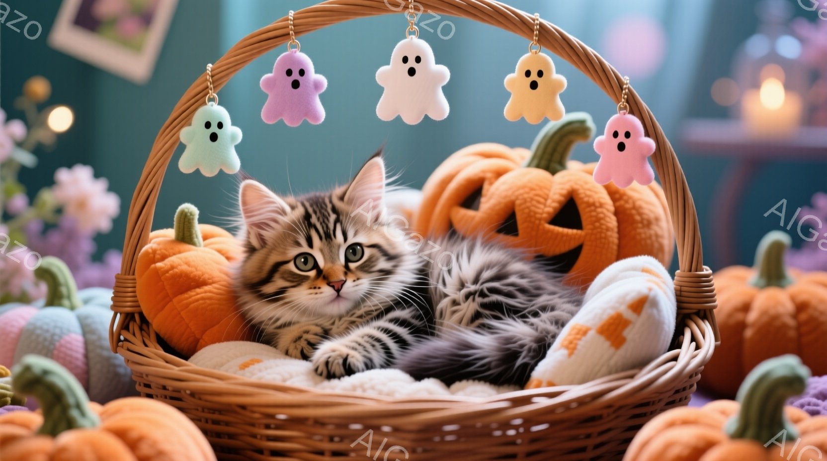 この無料AI生成画像「縞模様の猫が、赤い襟付きの黒いマントを羽織り、まるで吸血鬼のような姿で座っています。背景には、ハロウィーンの装飾が施された不気味な屋敷と、空を舞うコウモリ、そして庭に並んだジャック・オー・ランタンが広がっており、秋の夜の神秘的な雰囲気を醸し出しています。全体的に、ハロウィーンをテーマにした、少し不気味でありながらも可愛らしい光景です。」は、2025年10月25日に作成されました。 サイズは 1664×928px の高解像度で、商用利用も可能なフリー素材として提供しています。