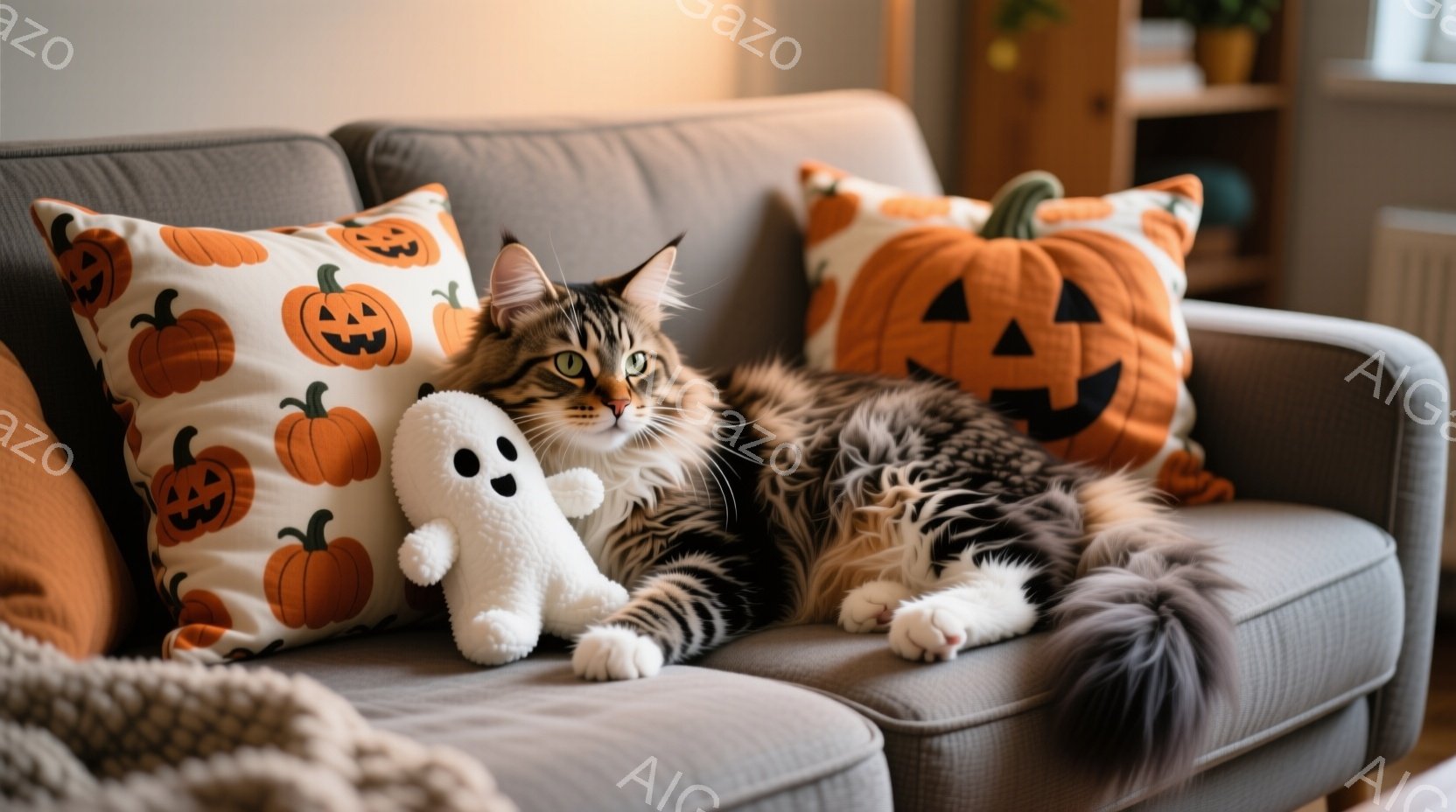 この無料AI生成画像「屋根付きのベランダには、ハロウィーンの装飾が施されたカボチャや可愛らしい幽霊の置物が整然と並んでいます。背景には暗い森が広がり、夜空にはぼんやりとした月が光り、全体的に温かく幻想的なハロウィーンの雰囲気が漂っています。ベランダの壁にはコウモリの飾りやライトが飾られ、さらにハロウィーンの雰囲気を盛り上げています。」は、2025年10月25日に作成されました。 サイズは 1664×928px の高解像度で、商用利用も可能なフリー素材として提供しています。
