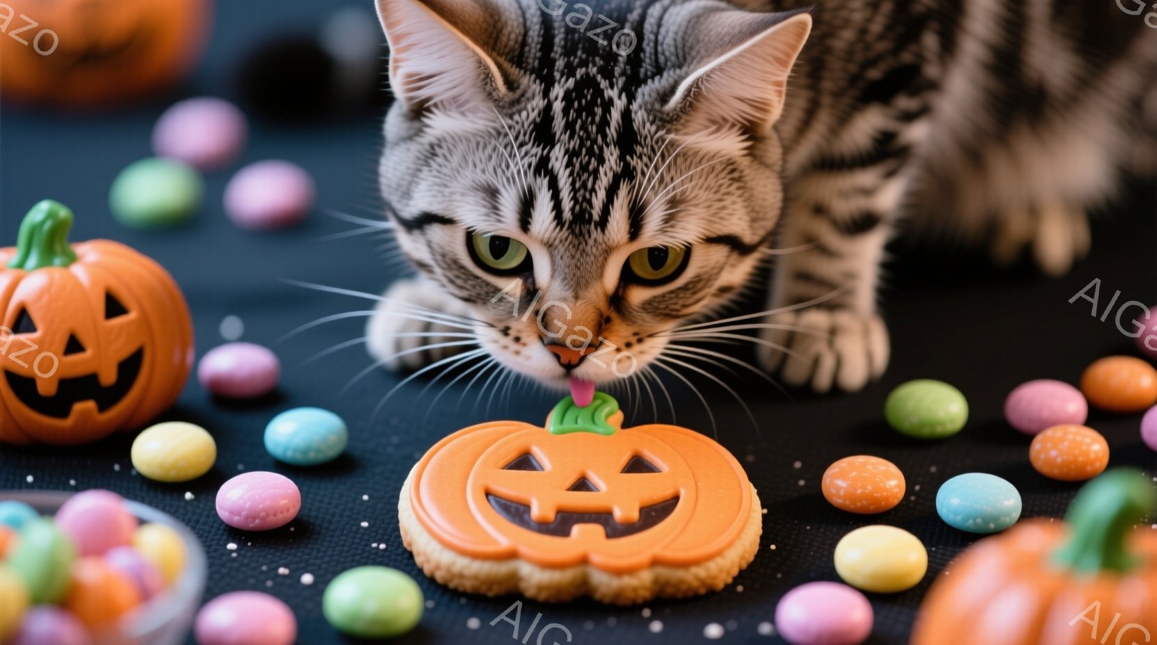 この無料AI生成画像「籠の中に縞模様の猫が横たわっており、周囲にはハロウィーンの装飾であるカボチャのぬいぐるみや幽霊の飾り付けが散りばめられています。猫はリラックスした表情で、丸まって眠っているかのように見えます。背景は淡いピンク色の布とぼやけた光で、全体的に暖かく、可愛らしいハロウィーンの雰囲気を醸し出しています。」は、2025年10月25日に作成されました。 サイズは 1664×928px の高解像度で、商用利用も可能なフリー素材として提供しています。