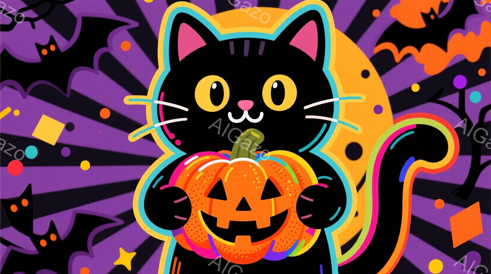 この無料AI生成画像「白と灰色の縞模様の猫が、星が散りばめられた青い魔法使いの帽子とマントを身に着けて座っています。背景には、さまざまな大きさのジャック・オ・ランタンが並び、秋の葉が散らばっています。暗い森の中を照らす、お化けのような、幻想的な雰囲気です。」は、2025年10月25日に作成されました。 サイズは 1664×928px の高解像度で、商用利用も可能なフリー素材として提供しています。