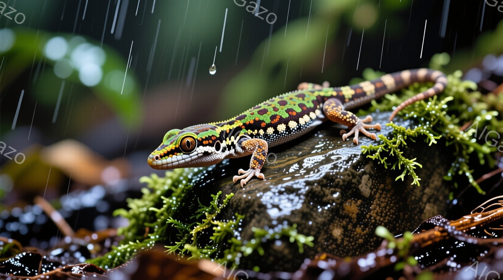 この無料AI生成画像「砂漠のような乾燥した草原を、ドット模様の美しいオオトカゲが歩いている。その体は黒と白のコントラストが強く、鮮やかな青色の鱗がアクセントになっている。背景は乾いた草が生い茂り、暖かな夕日の光が差し込み、全体的に乾燥した、荒野の雰囲気を醸し出している。」は、2025年10月22日に作成されました。 サイズは 1664×928px の高解像度で、商用利用も可能なフリー素材として提供しています。