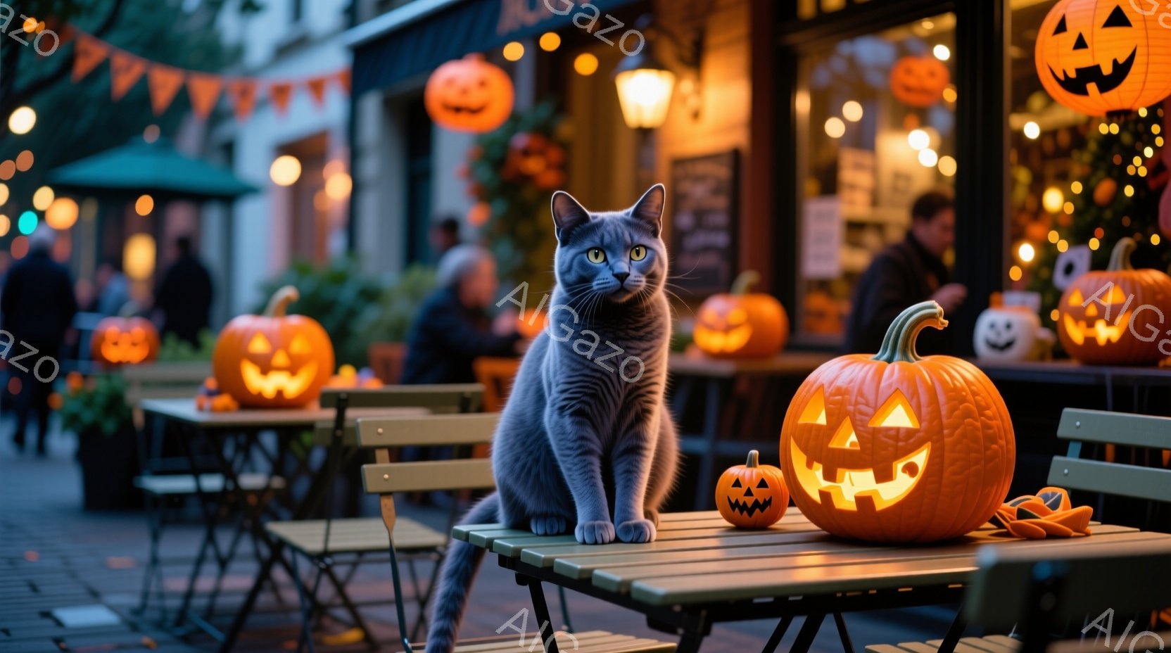 この無料AI生成画像「灰色の猫が魔法使いの帽子とマントを身につけ、堂々と座っています。周囲にはジャック・オー・ランタンが灯り、暗い森の中のハロウィーンの雰囲気を醸し出しています。背景にはぼんやりとした木々が見え、全体的に神秘的で幻想的な印象を与えます。」は、2025年10月25日に作成されました。 サイズは 1664×928px の高解像度で、商用利用も可能なフリー素材として提供しています。