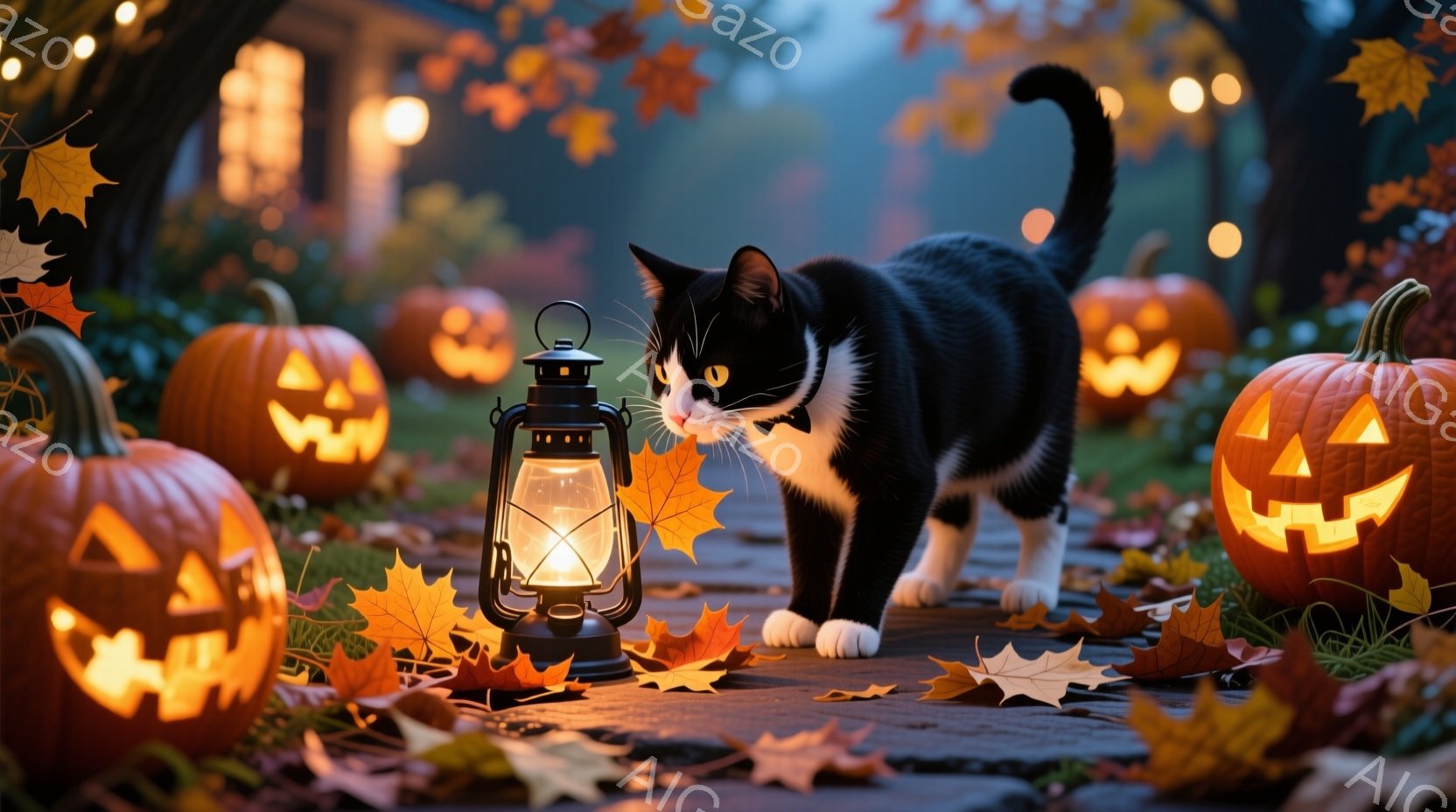 この無料AI生成画像「白と黒の猫が、ハロウィーンをテーマにしたカップケーキの盛られたケーキスタンドの前に座っています。猫は蝶ネクタイをつけており、真剣な表情でカメラを見つめています。背景には、かぼちゃのランタン、キャンディコーン、幽霊の形をした飾り、そして紫色の背景が広がっており、お祝いの雰囲気を醸し出しています。」は、2025年10月25日に作成されました。 サイズは 1664×928px の高解像度で、商用利用も可能なフリー素材として提供しています。