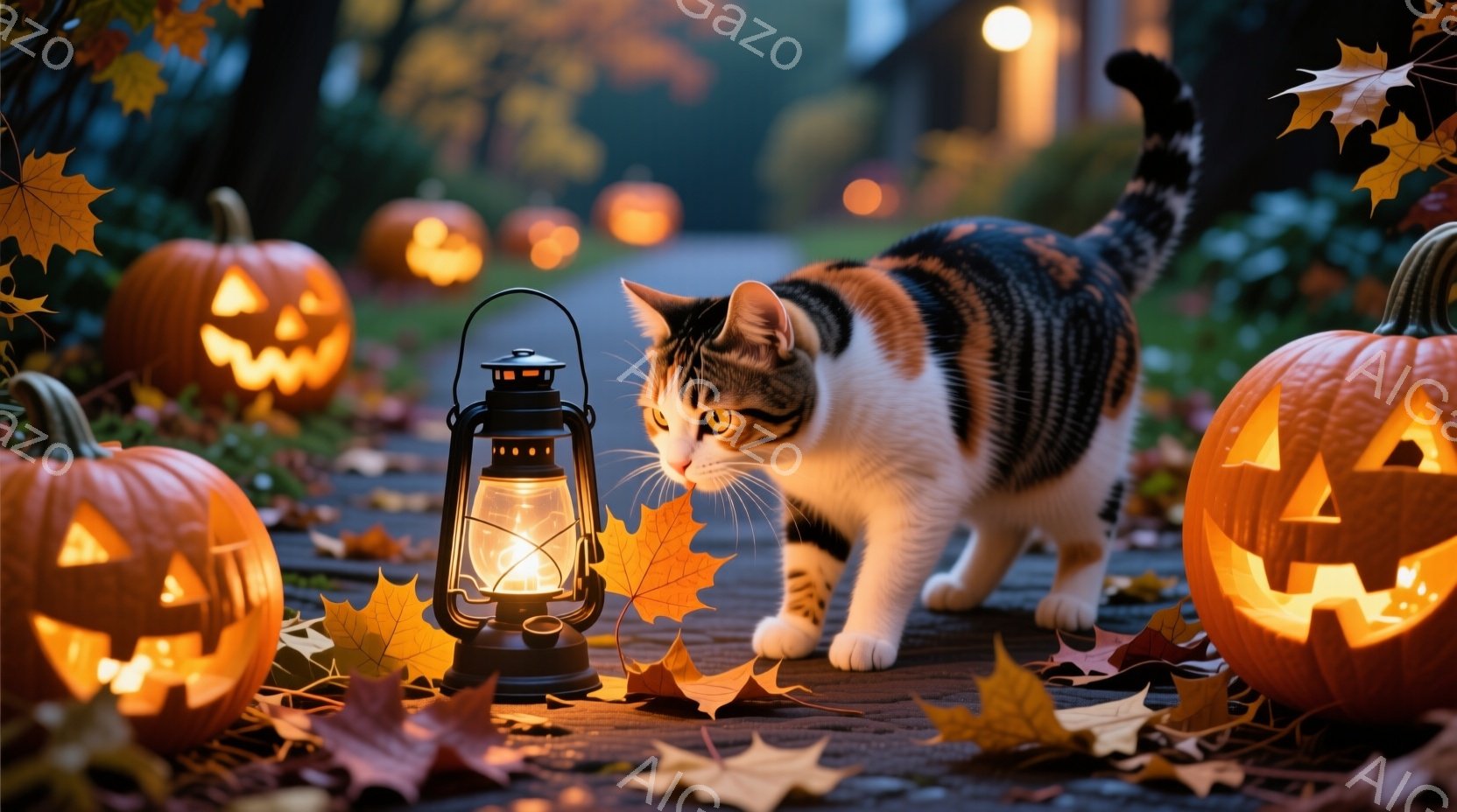 この無料AI生成画像「ハロウィーンをテーマにした猫たちが、彫刻されたカボチャに囲まれて座っています。中央の猫は魔女の帽子をかぶり、両側の猫はそれぞれカボチャの衣装とドラキュラの衣装を着ています。背景にはハロウィーンの装飾が施され、全体的に明るく楽しいお祝いの雰囲気です。」は、2025年10月25日に作成されました。 サイズは 1664×928px の高解像度で、商用利用も可能なフリー素材として提供しています。