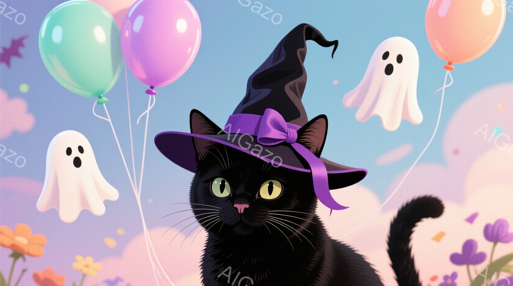 この無料AI生成画像「黒猫がオレンジ色のハロウィン風の衣装を着て、木製のデッキの上に座っています。周りには、さまざまな大きさのジャック・オー・ランタンが置かれ、中から温かい光が漏れています。背景には、ぼやけた家と、夕暮れ時の穏やかな雰囲気を感じさせます。」は、2025年10月25日に作成されました。 サイズは 1664×928px の高解像度で、商用利用も可能なフリー素材として提供しています。
