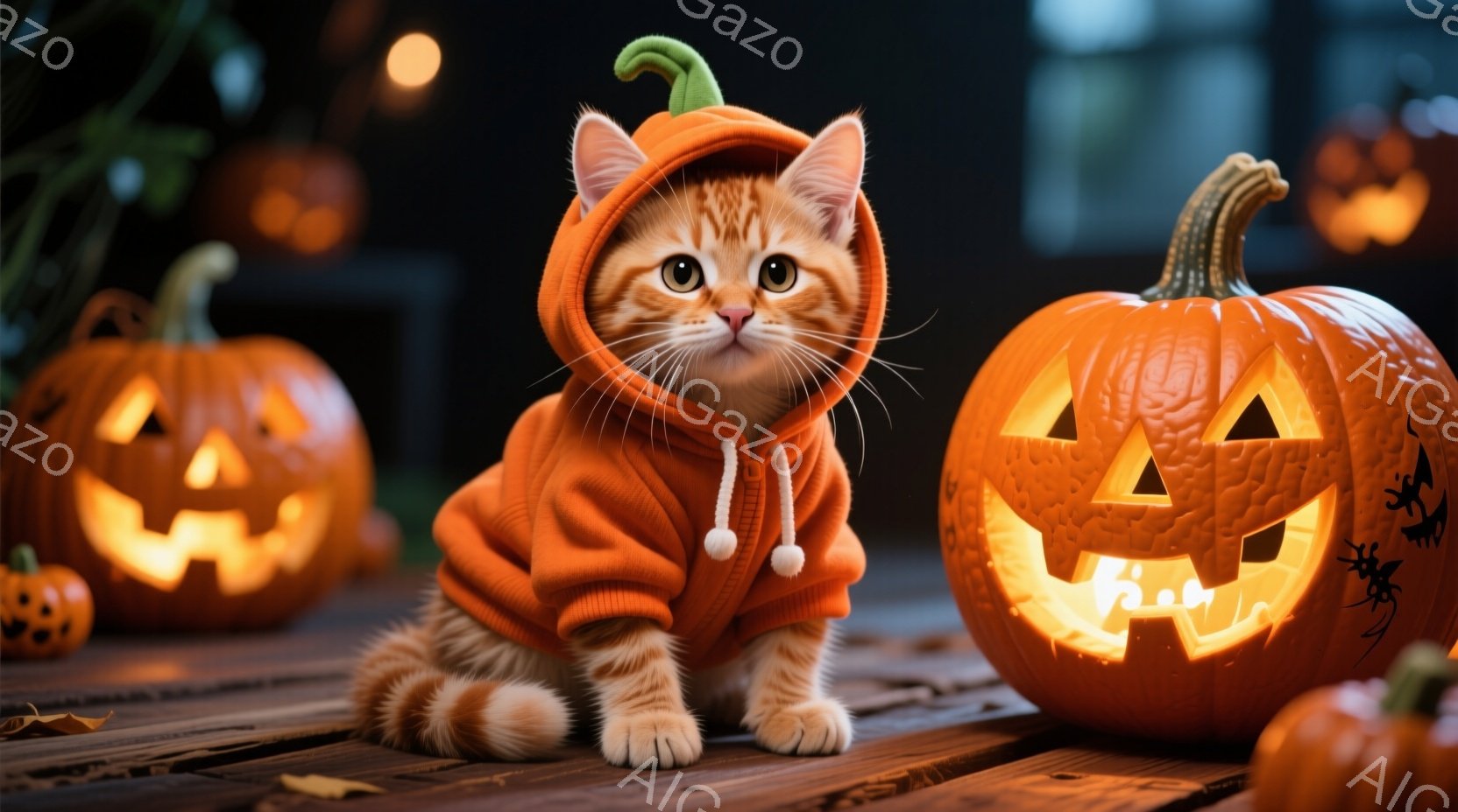 この無料AI生成画像「オレンジ色の毛並みの猫が、ハロウィーン用の黒い帽子をかぶって正面を見つめています。猫は少し自信のある表情で、ふわふわの尻尾が特徴的です。背景はターコイズブルーで、カラフルな風船や幽霊の飾り付けがされており、お祝いムードを演出しています。」は、2025年10月25日に作成されました。 サイズは 1664×928px の高解像度で、商用利用も可能なフリー素材として提供しています。