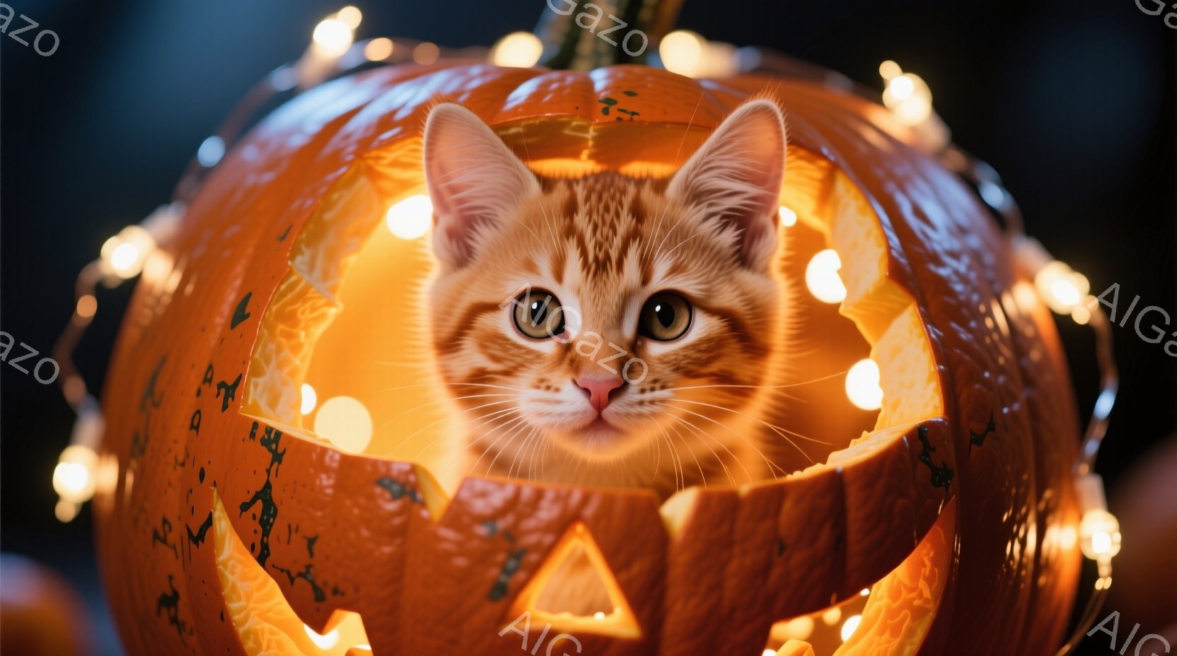 この無料AI生成画像「オレンジ色の猫が2匹、ハロウィーンのスケルトン柄の衣装を着て、オレンジと黒のストライプの背景に座っています。猫たちは前足を組み、少し退屈そうな表情でカメラを見ています。背景には、カボチャの形をしたおもちゃや、黒いコウモリのぬいぐるみがあり、全体的にハロウィーンの雰囲気を醸し出しています。」は、2025年10月25日に作成されました。 サイズは 1664×928px の高解像度で、商用利用も可能なフリー素材として提供しています。