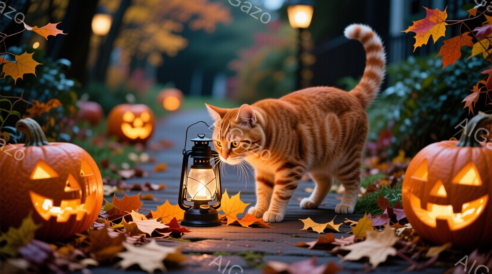 人間が描き、現実的な猫の代わりに、逆立ちする猫のようなキャラクターを用いたホログラフィックイメージであり、以下の要素が含まれています。 - キャラクターは、ハロウィンの雰囲気を出している。1猫は恐れを示す表情であり、2猫は興奮した表情を持っています。 - キャラクターの服装と髪型は魔法使い風で、魔法使いの様子を模しています。1猫は黒色の魔法使い風の服装、2猫は各自が違った色の魔法使い風の服装を着用しているでしょう。