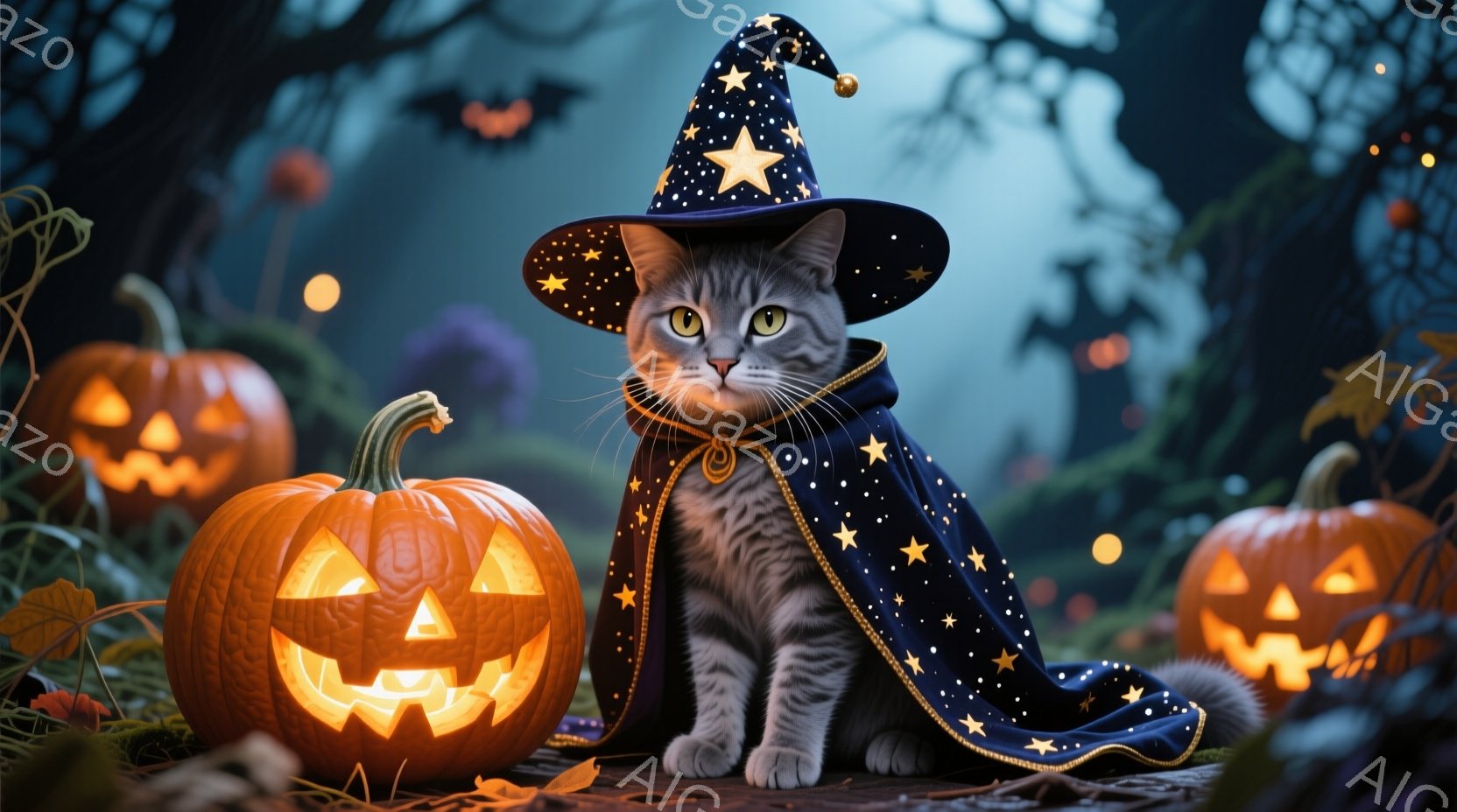 この無料AI生成画像「灰色の猫がベッドに横たわり、ハロウィーンの装飾であるオレンジ色のジャック・オー・ランタンの枕に囲まれています。猫はリラックスした表情でカメラを見つめており、ベッドの上には明るいストリングライトが飾られています。全体的に、暖かく心地よいハロウィーンの雰囲気が漂う、秋らしいベッドルームのシーンです。」は、2025年10月25日に作成されました。 サイズは 1664×928px の高解像度で、商用利用も可能なフリー素材として提供しています。