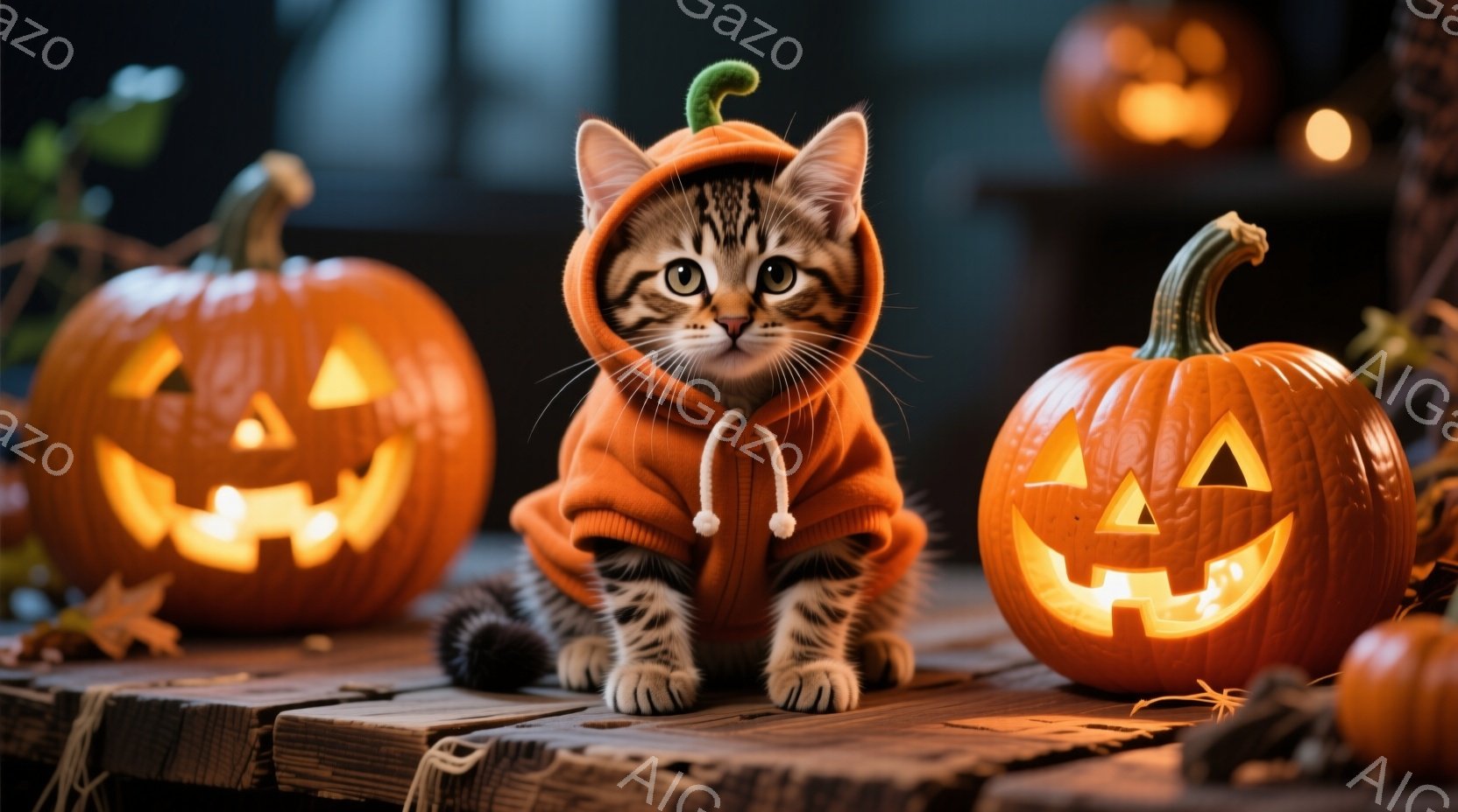 この無料AI生成画像「夜間のホログラフィックスタンプで、迷路を渡るための橋の上に座っている一匹のチャーコアキャット。彼女は暗い空と明かりが照らす夜の市場や住宅に囲まれ、月が昇る中で冷静な表情を見せている。周りには多くのJack-o'-lanternが灯りとして点在しており、ホログラフィックスタンプ技術が使用されたことが分かる。全体として、ハロウィンの雰囲気を表現するアートワークであり、幽玄な雰囲気が漂っている。」は、2025年10月25日に作成されました。 サイズは 1664×928px の高解像度で、商用利用も可能なフリー素材として提供しています。