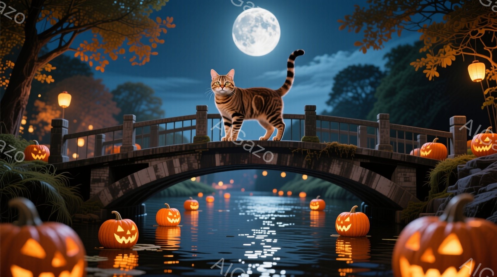この無料AI生成画像「茶色の縞模様の猫が、ハロウィーンをテーマにした衣装を着ています。その衣装は、ターコイズ色のジャケットと骸骨のプリントが特徴で、非常にユニークです。背景には、パステルカラーの風船と白い幽霊が浮かんでおり、お祭り気分を盛り上げています。」は、2025年10月25日に作成されました。 サイズは 1664×928px の高解像度で、商用利用も可能なフリー素材として提供しています。