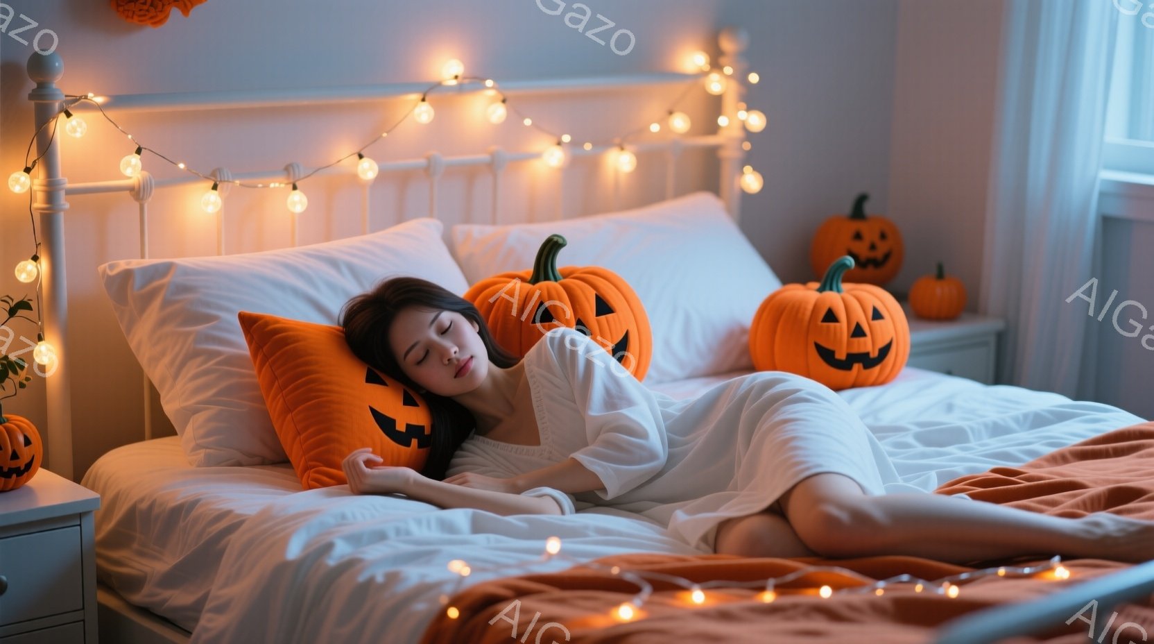 この無料AI生成画像「オレンジ色の毛並みの猫が、白い布を肩に羽織って座っています。猫は正面を見ており、少し驚いたような表情をしています。背景には、ジャック・オ・ランタンがいくつか置かれ、秋らしい枯葉が散らばっています。」は、2025年10月25日に作成されました。 サイズは 1664×928px の高解像度で、商用利用も可能なフリー素材として提供しています。