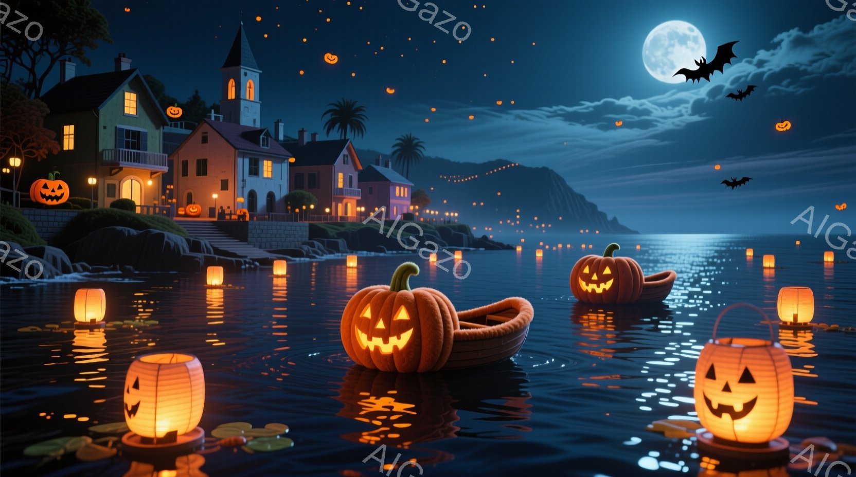 この無料AI生成画像「オレンジと黒の縞模様の猫が、紫色のリボンが飾られた黒い魔女帽子を被っています。猫は少し驚いたような表情で前を見つめ、背景にはハロウィーンらしいお化けや風船が浮かんでいます。夜空と薄暗い植物に囲まれ、お祝いと少し不思議な雰囲気が漂うハロウィーンのイラストレーションです。」は、2025年10月25日に作成されました。 サイズは 1664×928px の高解像度で、商用利用も可能なフリー素材として提供しています。