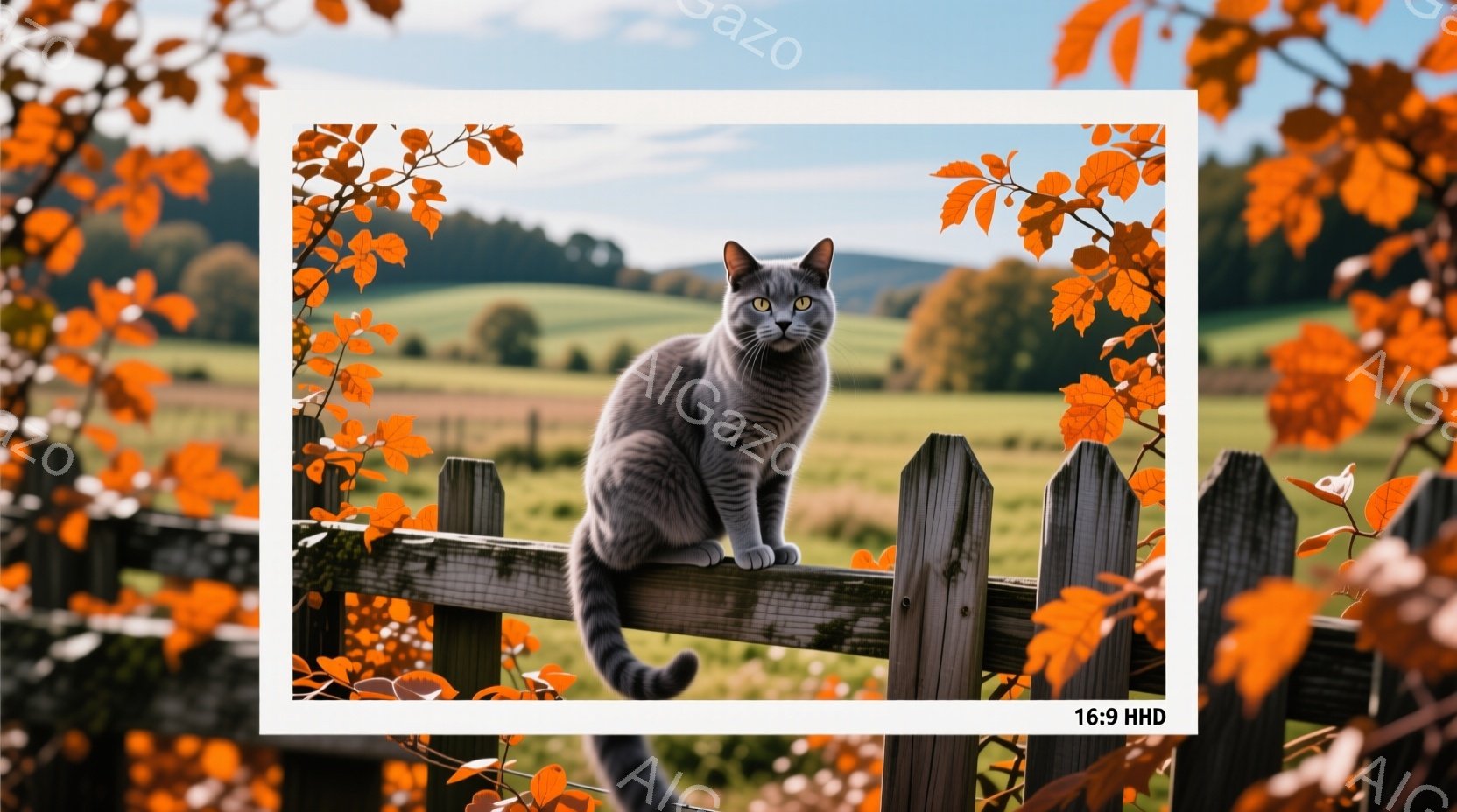 この無料AI生成画像「グレーの毛並みを持つ猫が、古びた木の柵の上でリラックスして座っています。その表情は穏やかで、まるで周囲の景色を眺めているようです。背景には緑豊かな牧草地が広がり、秋らしいオレンジ色の葉が周囲を彩り、穏やかで温かい雰囲気を醸し出しています。」は、2025年10月25日に作成されました。 サイズは 1664×928px の高解像度で、商用利用も可能なフリー素材として提供しています。