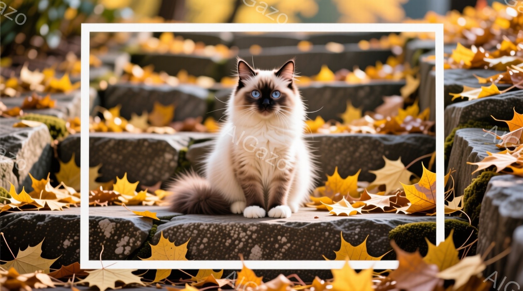 この無料AI生成画像「鮮やかな秋の風景の中に、三毛猫が丸まって座っています。猫は緑色の苔の上に座り、穏やかな表情で遠くを見つめています。背景には、赤い葉が散りばめられた小川と、木製の橋、そして鮮やかな紅葉の木々が広がり、秋の静けさと美しさを感じさせます。」は、2025年10月25日に作成されました。 サイズは 1664×928px の高解像度で、商用利用も可能なフリー素材として提供しています。
