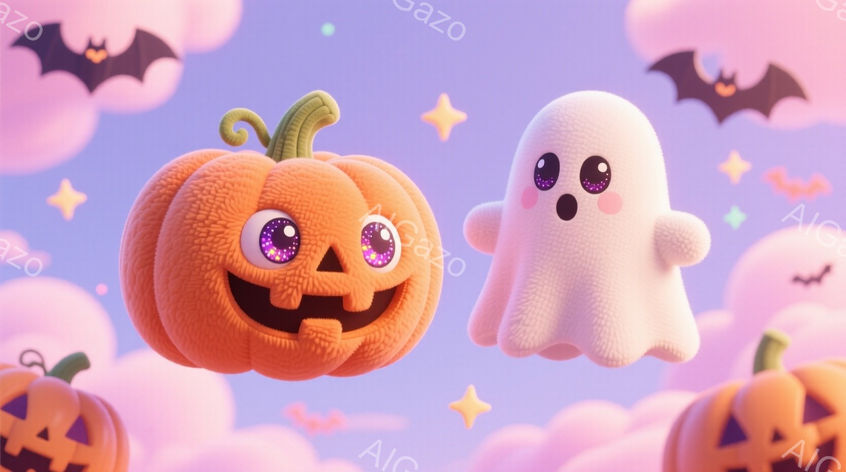 この無料AI生成画像「パステルカラーの可愛いお城と、お城の周りを飛び交うゴーストとカボチャのイラストです。ゴーストたちは手を広げ、楽しそうに笑っています。背景には、紫色の夕焼けと、シルエットのコウモリが見られ、ハロウィンの楽しい雰囲気が漂っています。」は、2025年10月25日に作成されました。 サイズは 1664×928px の高解像度で、商用利用も可能なフリー素材として提供しています。