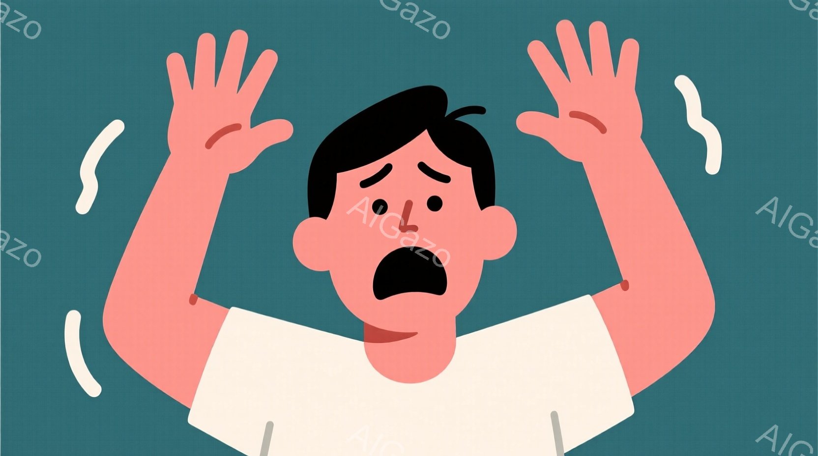 この無料AI生成画像「赤いシャツを着た男性が、驚いた表情で両手を上げています。彼の髪は黒く、短く整えられています。背景は水色で、全体的にシンプルで、恐怖や驚きを表現したイラストレーションです。」は、2025年10月25日に作成されました。 サイズは 1664×928px の高解像度で、商用利用も可能なフリー素材として提供しています。