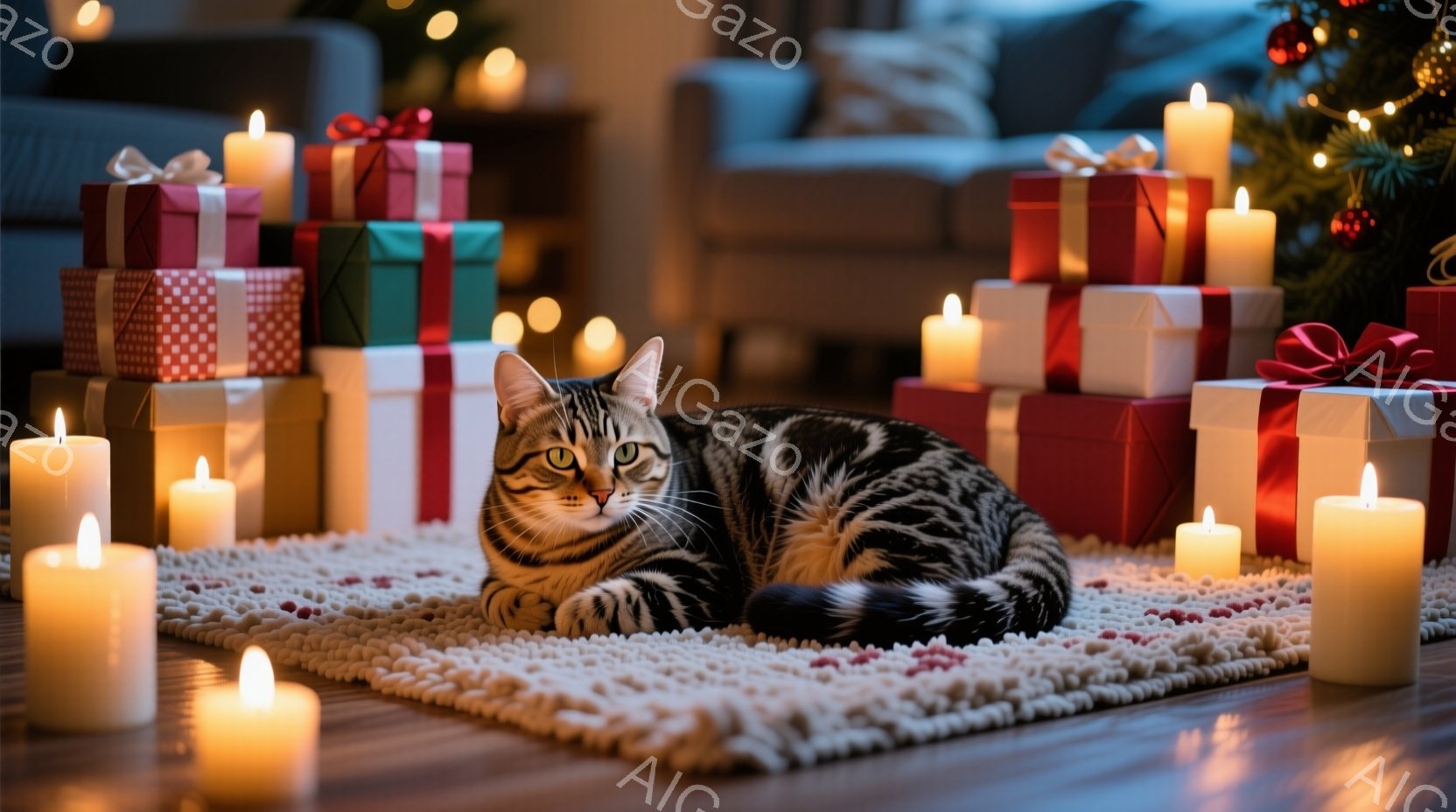 この無料AI生成画像「あらゆる人々が愛するクリスマスのシーンを表現する画像です。中央には、柔らかな白色の綿毛を持つ小さなタイガーキットが座っています。この可愛い生き物は、目を視ており、それは驚くような表情であり、彼は興奮しているかもしれません。周りには、金色のクリスマスガーランドが散らばっており、それによって、温かく明るい雰囲気が生まれています。背景には、ほんの一部のクリスマスツリーが見えますが、主眼はタイガーキットにあります。」は、2025年10月25日に作成されました。 サイズは 1664×928px の高解像度で、商用利用も可能なフリー素材として提供しています。