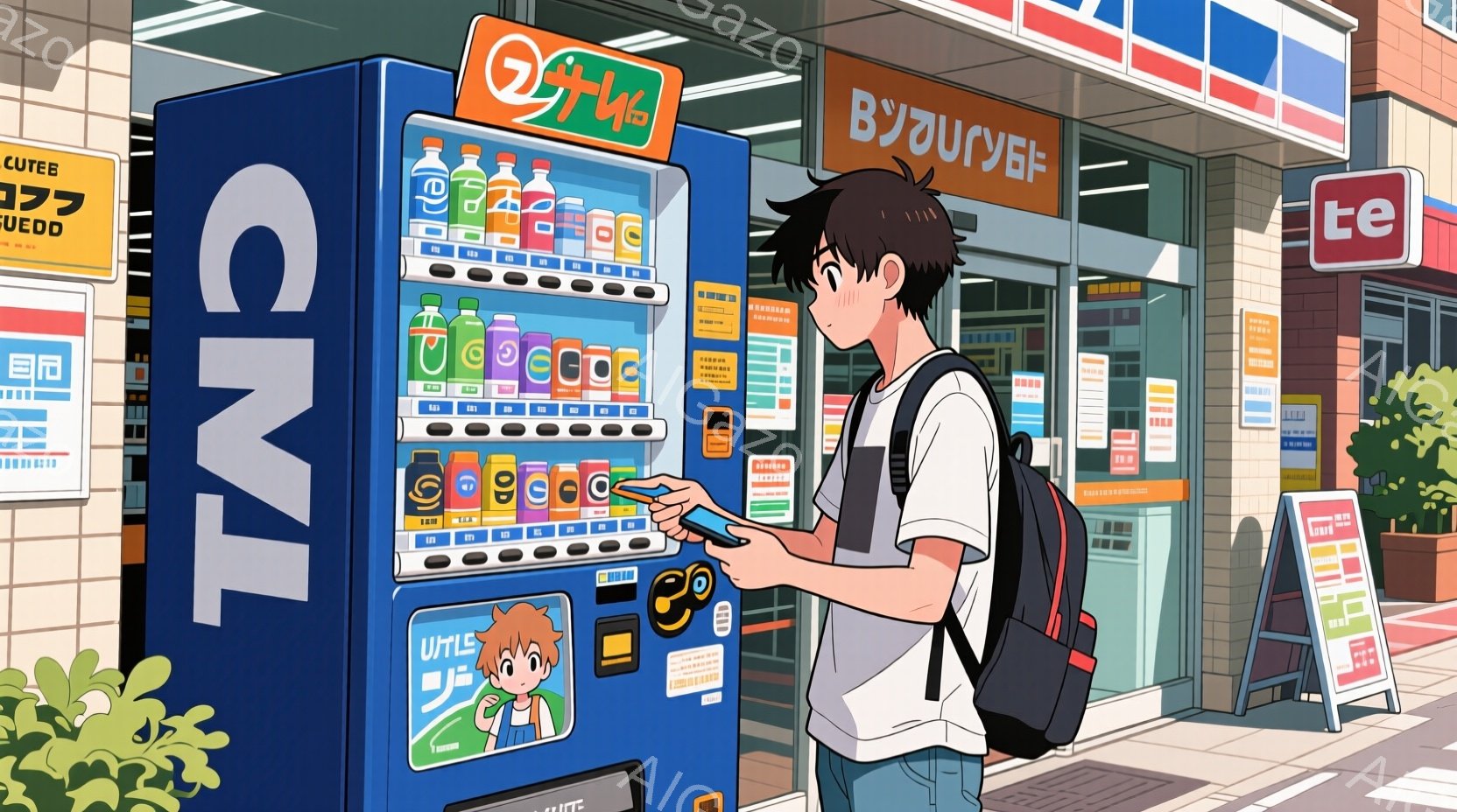 この無料AI生成画像「店員は紺色の制服と帽子を着用し、笑顔で女性客に何かを指し示しています。女性客は黒髪で、少し驚いた表情で店員の方を見ています。背景には商品が並んだ棚とレジがあり、明るく活気のあるコンビニエンスストアの雰囲気です。」は、2025年10月25日に作成されました。 サイズは 1664×928px の高解像度で、商用利用も可能なフリー素材として提供しています。