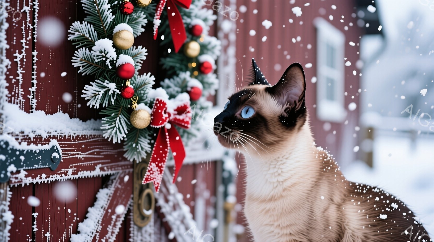 この無料AI生成画像「シーマル猫が、豪華なクリーム色の肘掛け椅子の座席に座っており、頭にはサンタ帽を被っています。猫は正面をまっすぐ見つめ、瞳は鮮やかな水色で、わずかに警戒した表情を浮かべています。背景にはぼやけた植物や家具が見え、暖かくお祝いムードが漂っています。」は、2025年10月25日に作成されました。 サイズは 1664×928px の高解像度で、商用利用も可能なフリー素材として提供しています。