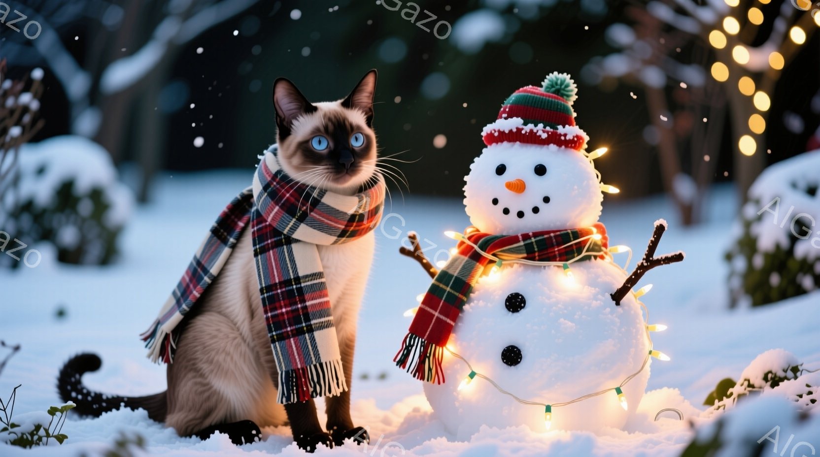 この無料AI生成画像「白い猫が雪模様の窓から外を覗いています。猫はシロクマのような色合いで、青い目が印象的です。窓の外には雪が降り積もり、クリスマスの飾りやロウソクが暖かく灯り、冬の穏やかな雰囲気が漂っています。」は、2025年10月25日に作成されました。 サイズは 1664×928px の高解像度で、商用利用も可能なフリー素材として提供しています。