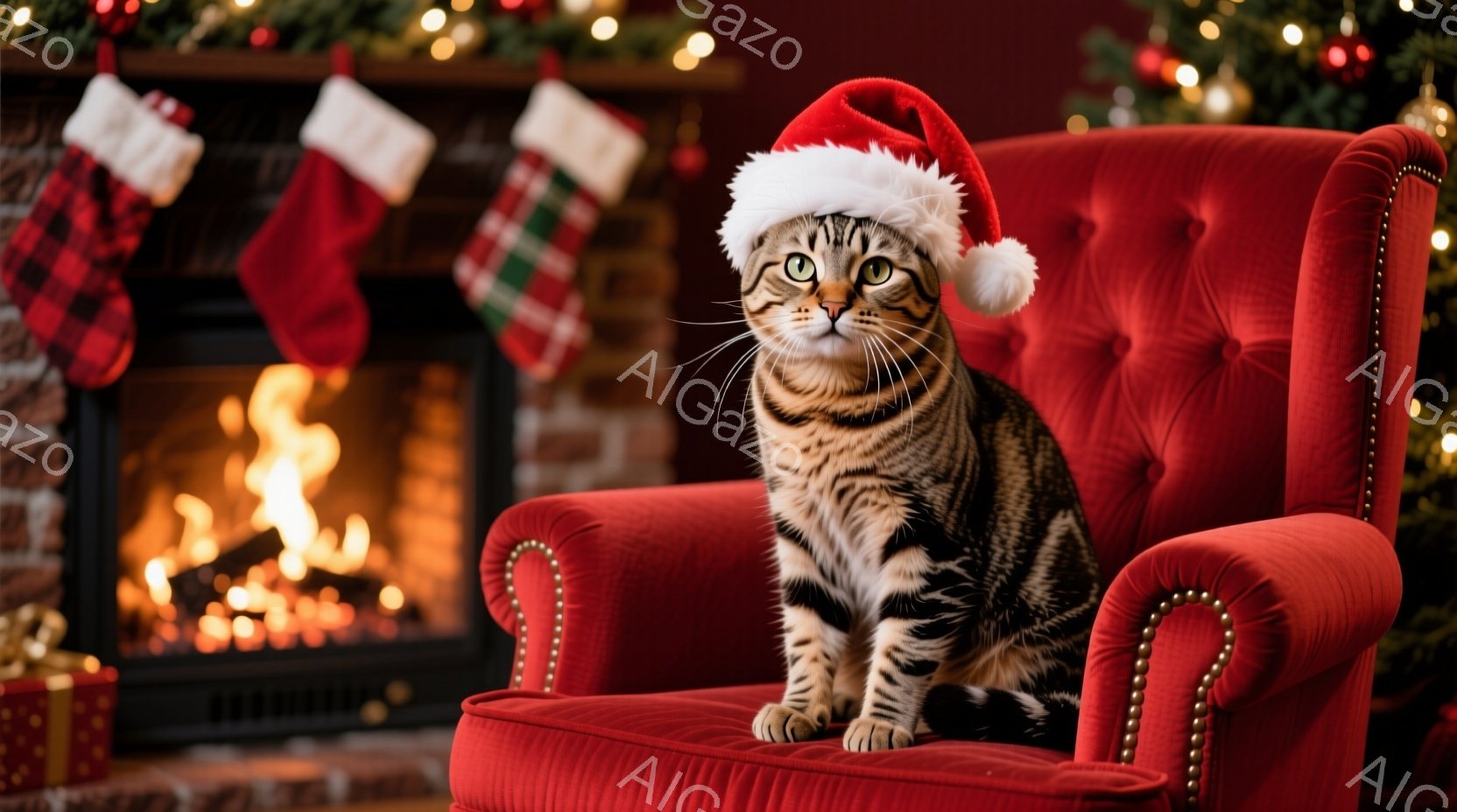 この無料AI生成画像「縞模様の猫が赤い木製の壁にかかったクリスマスリースを見上げています。雪が降り積もり、猫の毛並みや壁に白い覆いができており、冬の穏やかな雰囲気を醸し出しています。背景はぼやけていますが、雪景色の中に暖かい光が差し込み、季節の安らぎを感じさせます。」は、2025年10月25日に作成されました。 サイズは 1664×928px の高解像度で、商用利用も可能なフリー素材として提供しています。