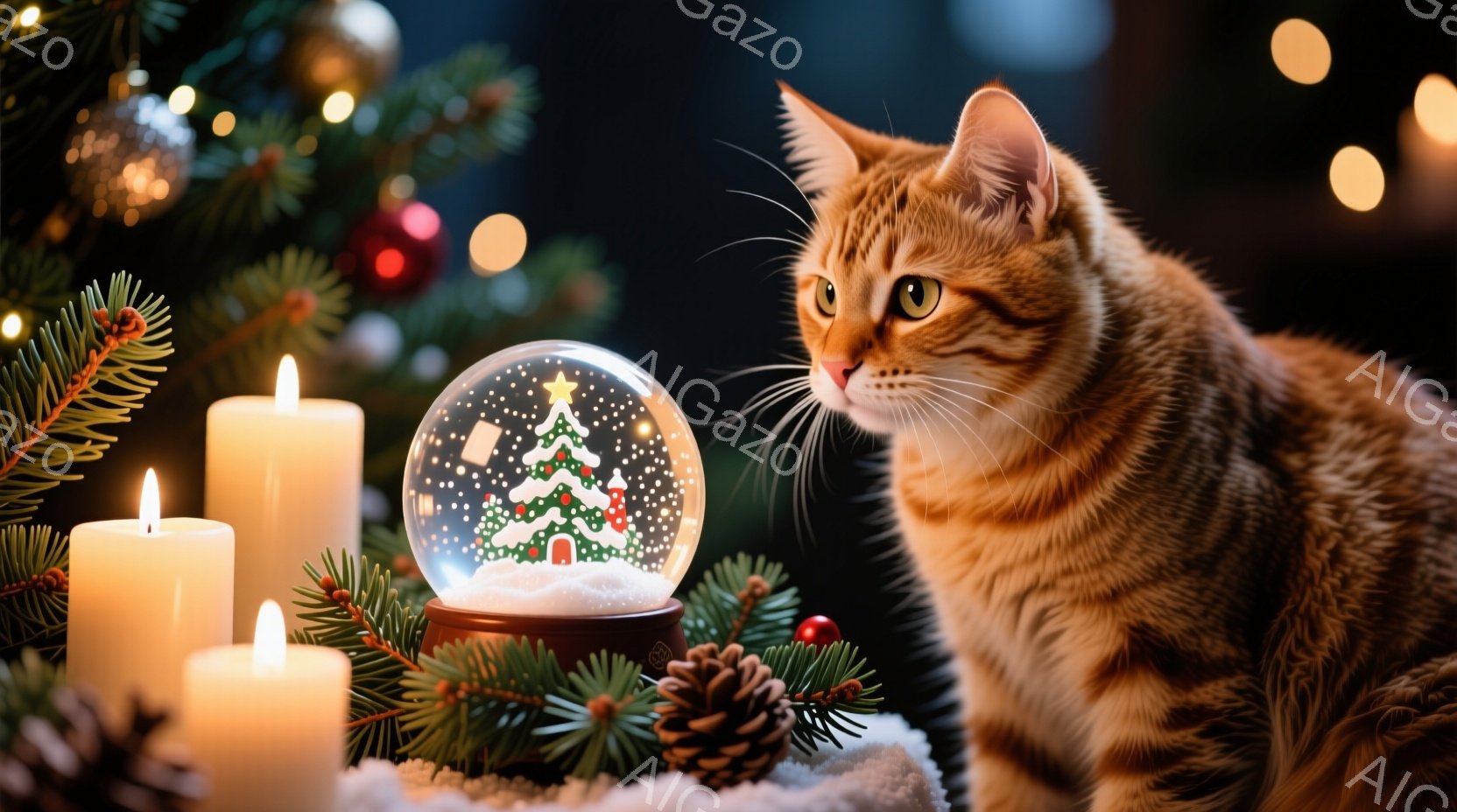 この無料AI生成画像「暖炉のある居間に、オレンジ色の縞模様の猫がソファに横たわっています。猫はリラックスした様子で、カメラの方を見て穏やかな表情を浮かべています。背景にはクリスマスツリーが飾られ、赤いクリスマスストッキングが暖炉の上に掛けられ、温かく幸せなホリデーの雰囲気が漂っています。」は、2025年10月25日に作成されました。 サイズは 1664×928px の高解像度で、商用利用も可能なフリー素材として提供しています。