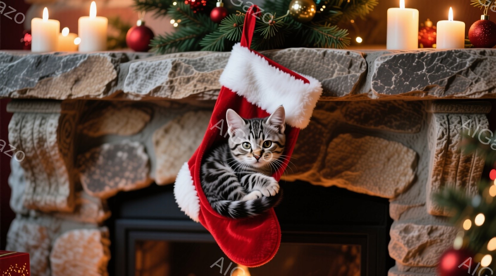 この無料AI生成画像「白い手すりに、角のついた灰色の縞模様の猫が座っています。背景には、クリスマス装飾された玄関と雪景色が広がっており、暖かく穏やかな冬の雰囲気が漂っています。キャンドルが灯されたランタンが猫の周りを照らし、可愛らしい姿を際立たせています。」は、2025年10月25日に作成されました。 サイズは 1664×928px の高解像度で、商用利用も可能なフリー素材として提供しています。