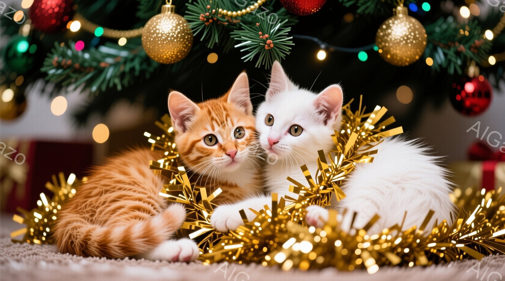この無料AI生成画像「オレンジと白の毛並みを持つ猫が、赤い模様が入った絨毯の上で丸まって横たわっています。周りにはラッピングされたプレゼントと、灯りの温かい光を放つキャンドルが置かれ、クリスマスの雰囲気を醸し出しています。猫はリラックスした表情で、穏やかで温かい空気が漂っています。」は、2025年10月25日に作成されました。 サイズは 1664×928px の高解像度で、商用利用も可能なフリー素材として提供しています。