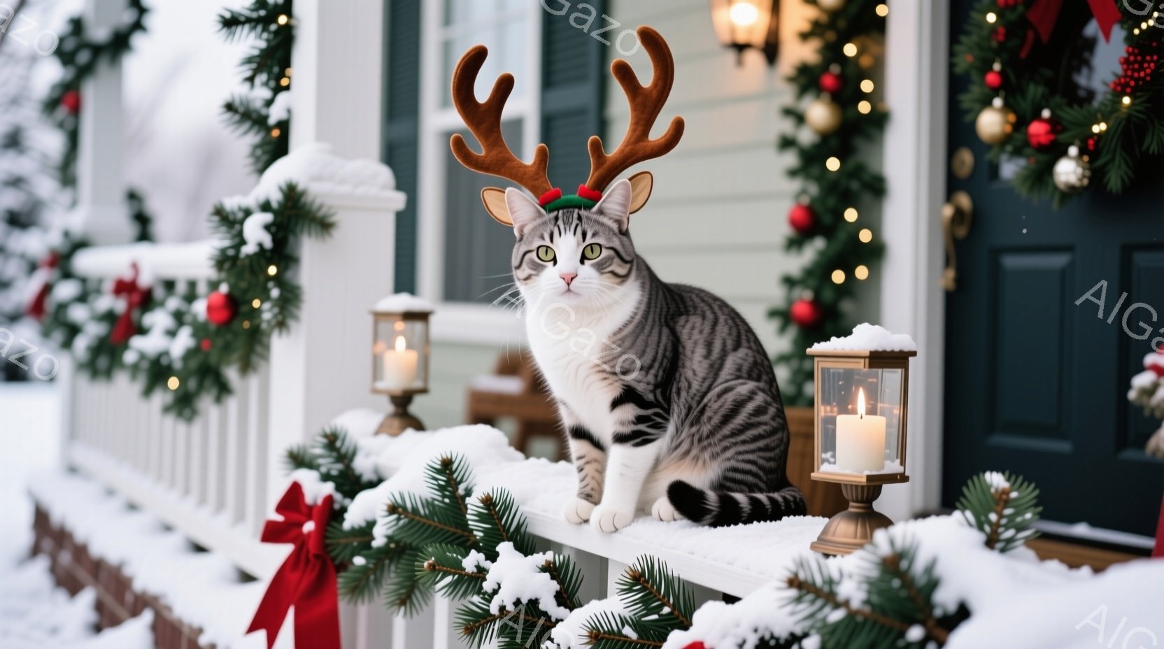 この無料AI生成画像「白とグレーの縞模様の猫が、クリーム色の幾何学模様のラグの上に横たわっています。背景には、金と銀のオーナメントで飾られたクリスマスツリーがあり、プレゼントボックスも置かれています。全体的に暖かく、お祝いの雰囲気で、猫はリラックスした様子でくつろいでいます。」は、2025年10月25日に作成されました。 サイズは 1664×928px の高解像度で、商用利用も可能なフリー素材として提供しています。