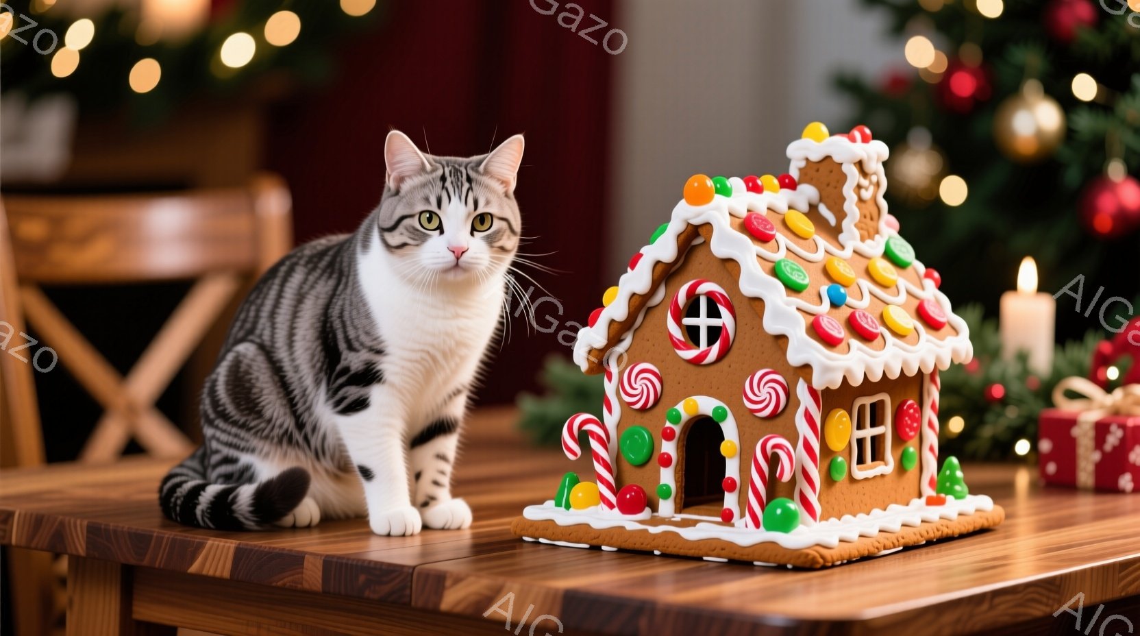 この無料AI生成画像「白地に緑のクリスマスツリー柄のセーターを着た猫が、赤い毛布の上に横たわって眠っています。猫は目を閉じ、リラックスした表情で、片足を曲げて可愛らしいポーズをとっています。背景にはぼやけたクリスマスツリーの飾りが見え、全体的に温かく、心地よいクリスマスの雰囲気が漂っています。」は、2025年10月25日に作成されました。 サイズは 1664×928px の高解像度で、商用利用も可能なフリー素材として提供しています。