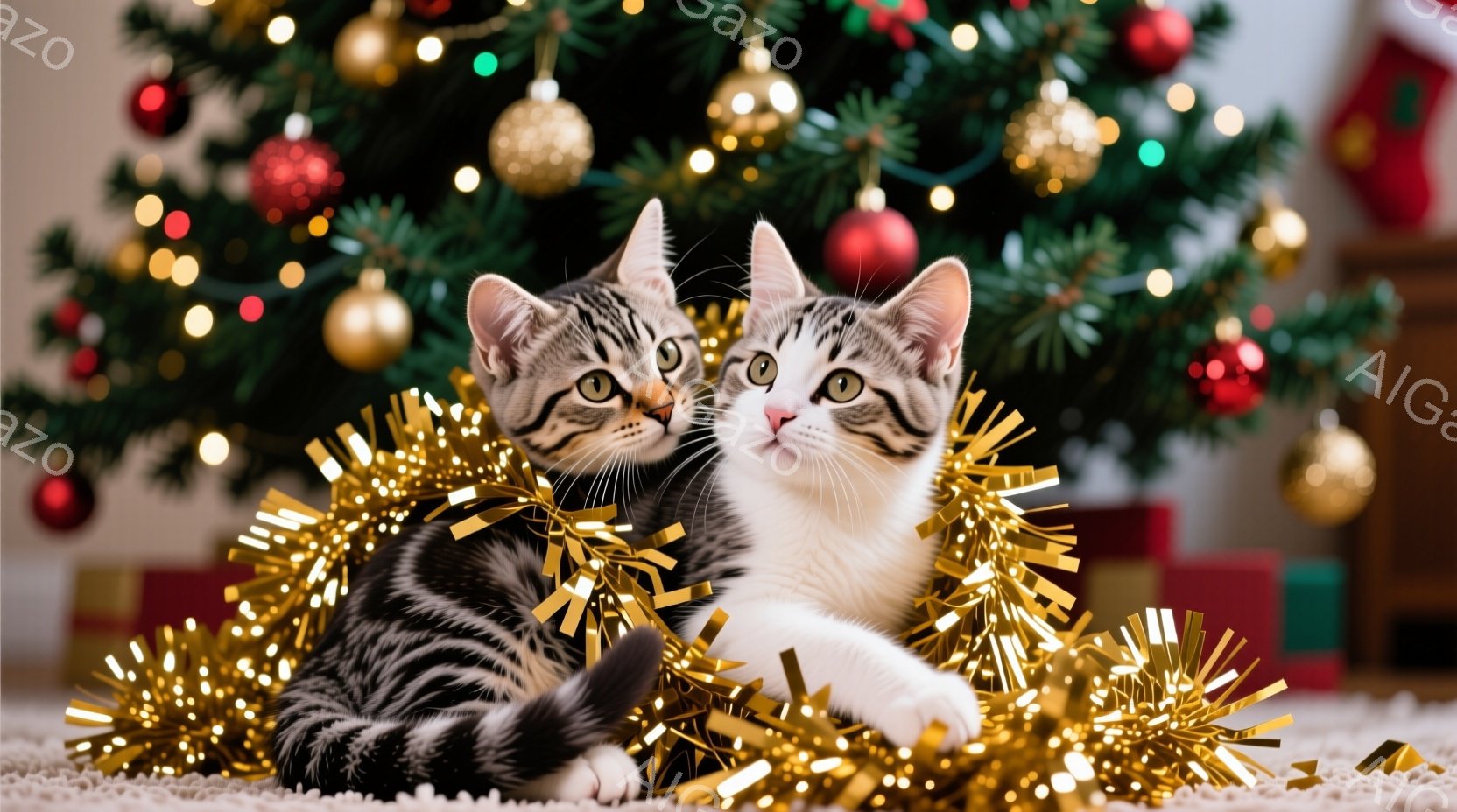 この無料AI生成画像「白と灰色の縞模様の猫が、赤いクリスマス柄のクッションと白い刺繍のクッションに囲まれて灰色のソファで横たわっています。猫はリラックスした様子で、少しだけカメラ目線で、穏やかな表情を浮かべています。背景にはぼんやりと光るクリスマスライトがあり、暖かく心地よい冬の雰囲気を醸し出しています。」は、2025年10月25日に作成されました。 サイズは 1664×928px の高解像度で、商用利用も可能なフリー素材として提供しています。