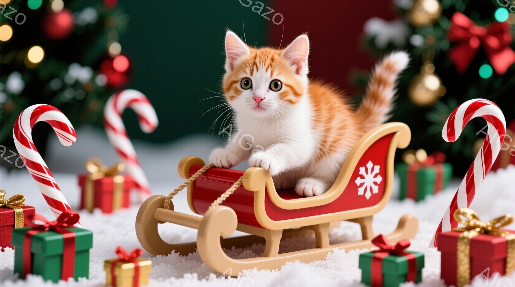この無料AI生成画像「白とオレンジの毛並みの猫が、赤いサンタの衣装と帽子を身に着け、屋根の上で座っています。背景には雪が積もった建物や点灯したランタンが並び、クリスマスの夜の暖かく幻想的な雰囲気を醸し出しています。猫は穏やかな表情で、冬の夜空の下、静かに佇んでいます。」は、2025年10月25日に作成されました。 サイズは 1664×928px の高解像度で、商用利用も可能なフリー素材として提供しています。