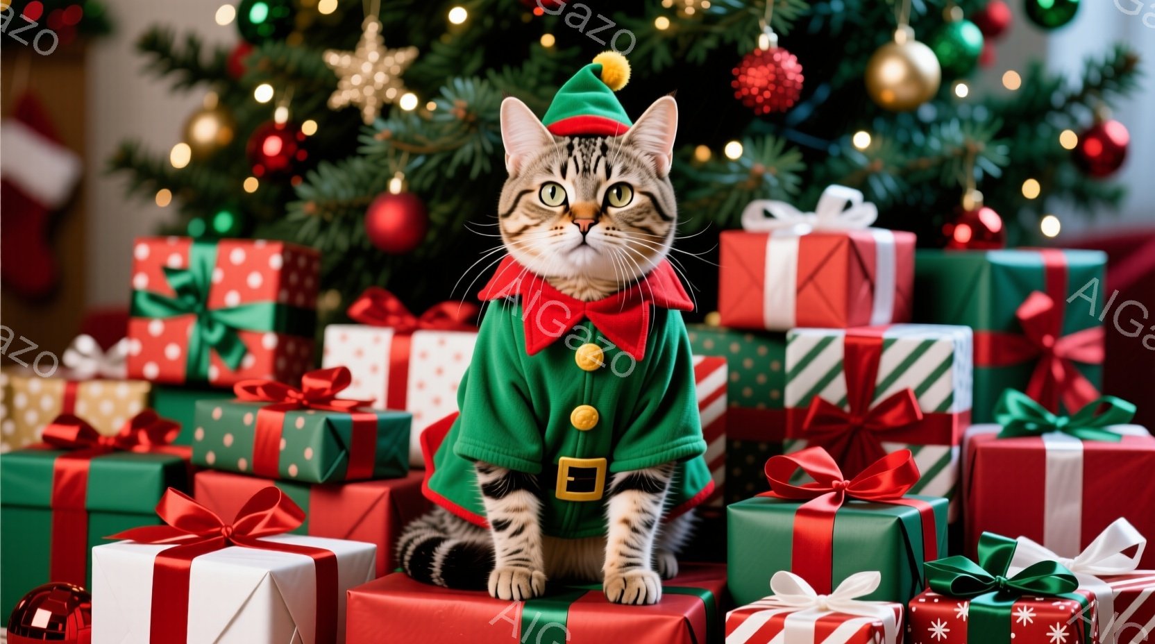 この無料AI生成画像「一匹の縞模様の猫が雪の積もったベンチに横たわっています。赤いリボンと金色の鈴が飾られた首輪をつけており、穏やかな表情でカメラを見つめています。背景には、キラキラと輝くイルミネーションと、ぼんやりと見える人々がおり、冬の夜の温かく幻想的な雰囲気を醸し出しています。」は、2025年10月25日に作成されました。 サイズは 1664×928px の高解像度で、商用利用も可能なフリー素材として提供しています。