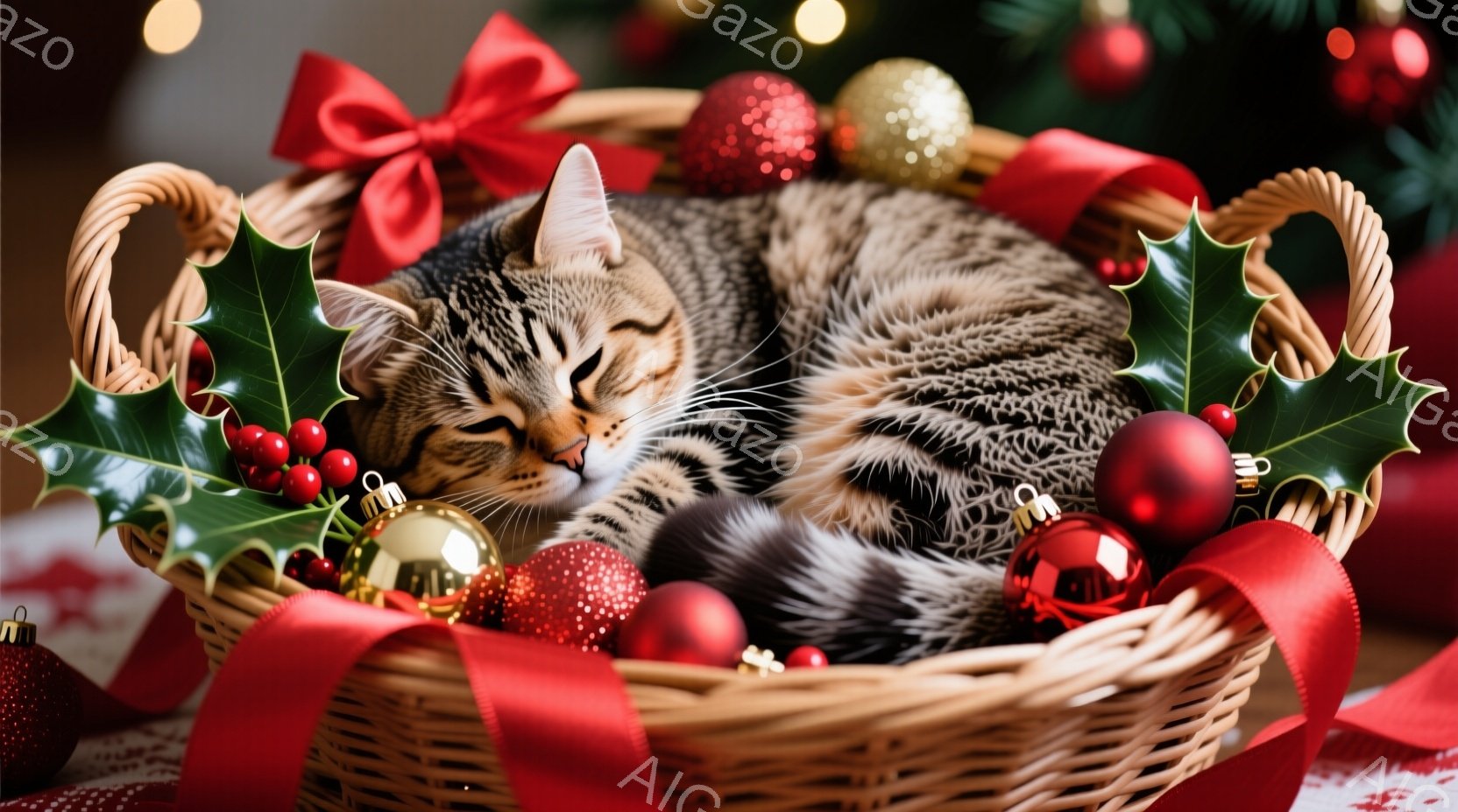 この無料AI生成画像「白い雪に覆われた家の外階段に、茶トラの猫が座っています。頭にはトナカイの角のような飾りをつけており、少し困ったような表情で正面を見ています。背景にはクリスマス装飾が施された家と、雪に覆われた植物が見られ、冬の暖かくユーモラスな雰囲気が漂っています。」は、2025年10月25日に作成されました。 サイズは 1664×928px の高解像度で、商用利用も可能なフリー素材として提供しています。