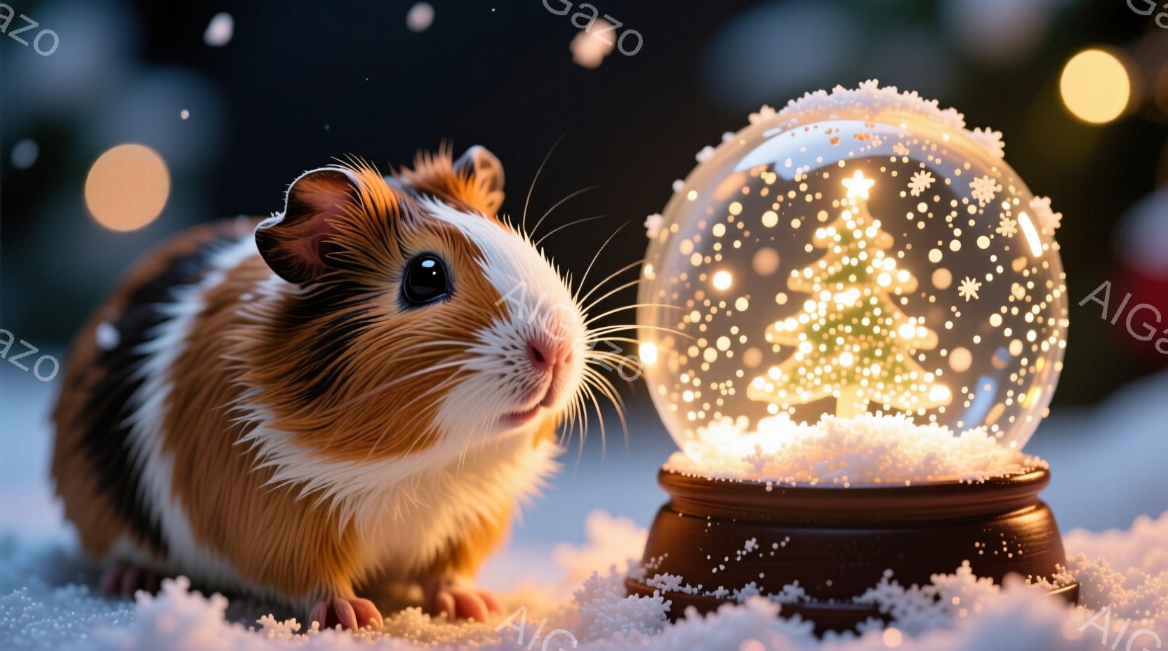この無料AI生成画像「クリスマスツリーの背景に、プレゼントの山に座る可愛らしいモルモットがいます。モルモットは白、茶色、黒の毛並みで、小さな鼻と輝く目をしており、何かを期待しているような表情をしています。プレゼントは赤、緑、金色の包装紙で飾られ、白い雪の上に置かれています。」は、2025年10月25日に作成されました。 サイズは 1664×928px の高解像度で、商用利用も可能なフリー素材として提供しています。