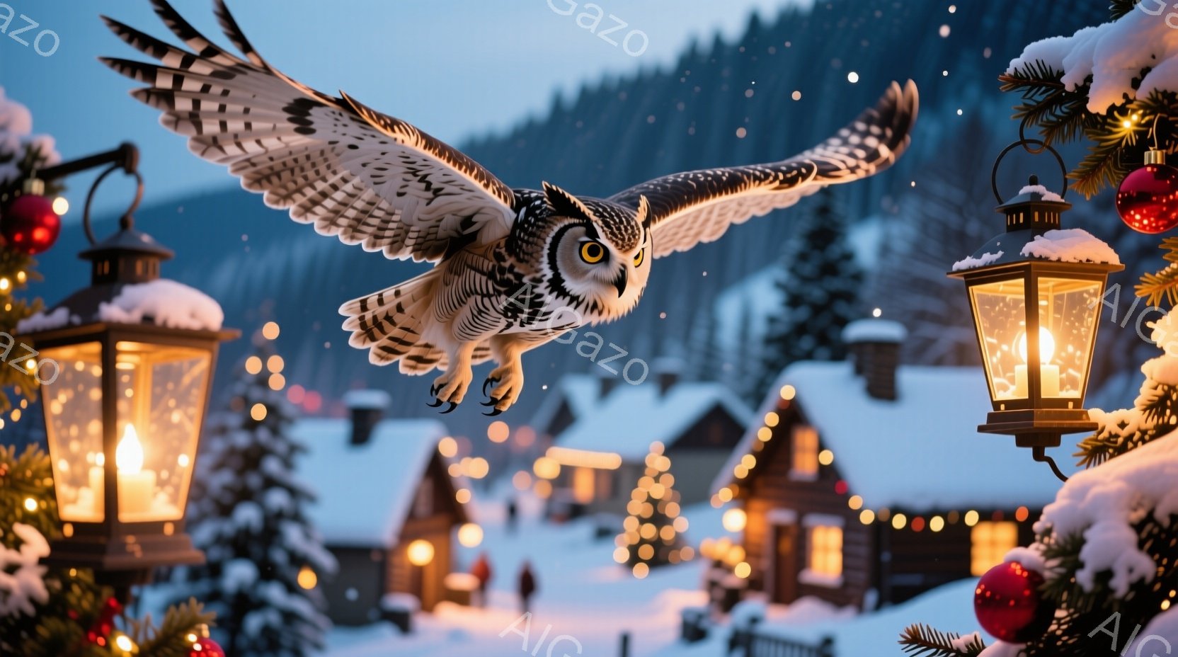 この無料AI生成画像「一匹のフクロウが、赤いストライプのクリスマスストッキングの中に頭を出しています。フクロウは鋭い眼差しでこちらを見つめ、少しユーモラスな表情を浮かべています。背景には、クリスマスツリーや暖炉があり、暖かく、お祝いの雰囲気です。」は、2025年10月25日に作成されました。 サイズは 1664×928px の高解像度で、商用利用も可能なフリー素材として提供しています。