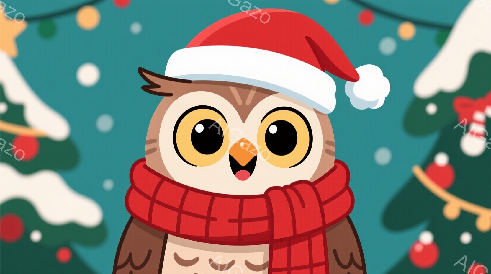 この無料AI生成画像「ふくろうがクリスマス風の服装をしています。赤いサンタの帽子と赤いストライプの首巻きを身に着けており、嬉しそうな表情で口を開けています。背景には緑色の木と雪の結晶が散りばめられており、全体的に温かくお祝いムードに包まれています。」は、2025年10月25日に作成されました。 サイズは 1664×928px の高解像度で、商用利用も可能なフリー素材として提供しています。