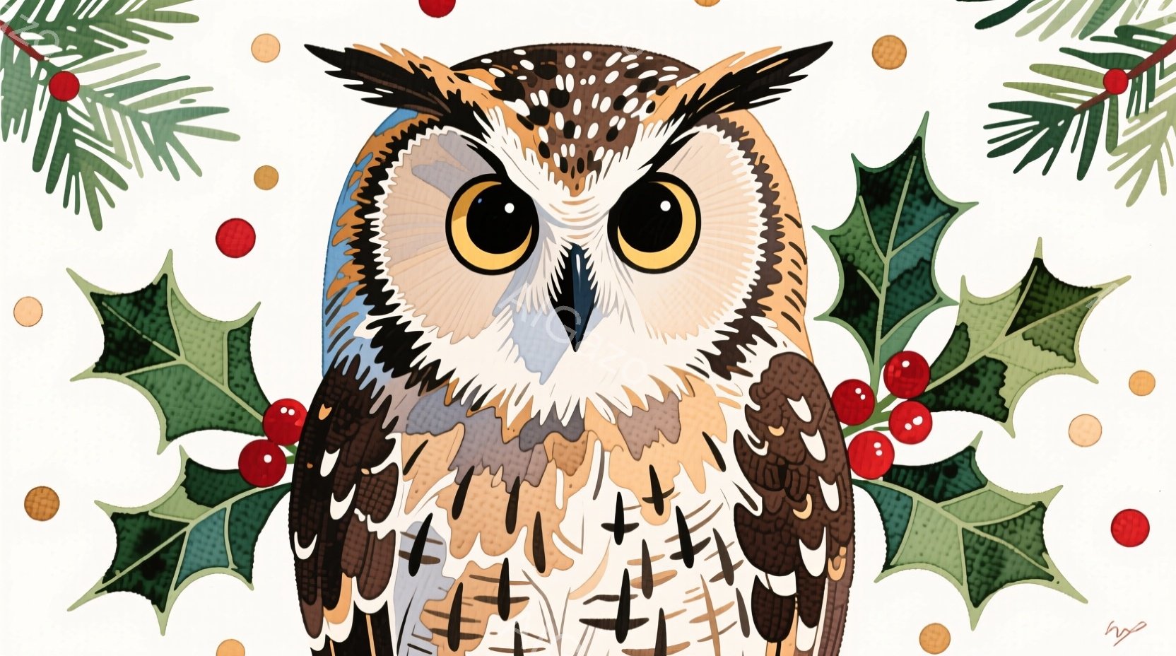 この無料AI生成画像「プレゼントの箱を抱えたフクロウが複数描かれています。フクロウたちは翼を広げ、箱を正面に向けて提示しており、それぞれ緑や赤の包装紙にリボンが結ばれています。背景はぼかした緑色で、フクロウたちは木の枝に止まっているように見え、全体的に明るくお祝いの雰囲気です。」は、2025年10月25日に作成されました。 サイズは 1664×928px の高解像度で、商用利用も可能なフリー素材として提供しています。