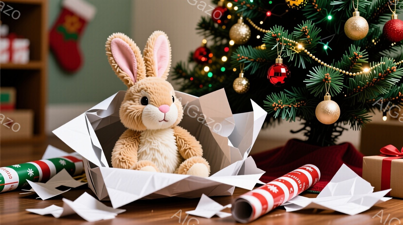 この無料AI生成画像「クリスマスツリーの前に、プレゼントの山の上に、ふわふわの茶色のトナカイのぬいぐるみが座っています。トナカイは赤い鼻と優しい表情をしており、周りにはキラキラと輝くオーナメントやぼやけた光が散りばめられています。全体的に暖かく、お祝いムードにあふれたクリスマスの光景です。」は、2025年10月25日に作成されました。 サイズは 1664×928px の高解像度で、商用利用も可能なフリー素材として提供しています。