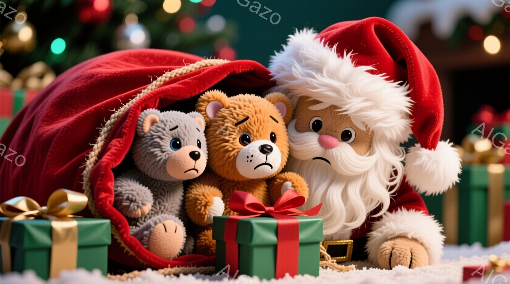 この無料AI生成画像「暖炉の光の中で、トナカイの角と赤い鼻を持つテディベアが、緑色のリボンを首に巻き、片手を上げています。背景には、笑顔で楽しんでいる若い男女が数人見え、温かく幸せな雰囲気が漂っています。ぼやけた背景には、キラキラ光るホリデーデコレーションがいくつか見え、お祝いの雰囲気です。」は、2025年10月25日に作成されました。 サイズは 1664×928px の高解像度で、商用利用も可能なフリー素材として提供しています。