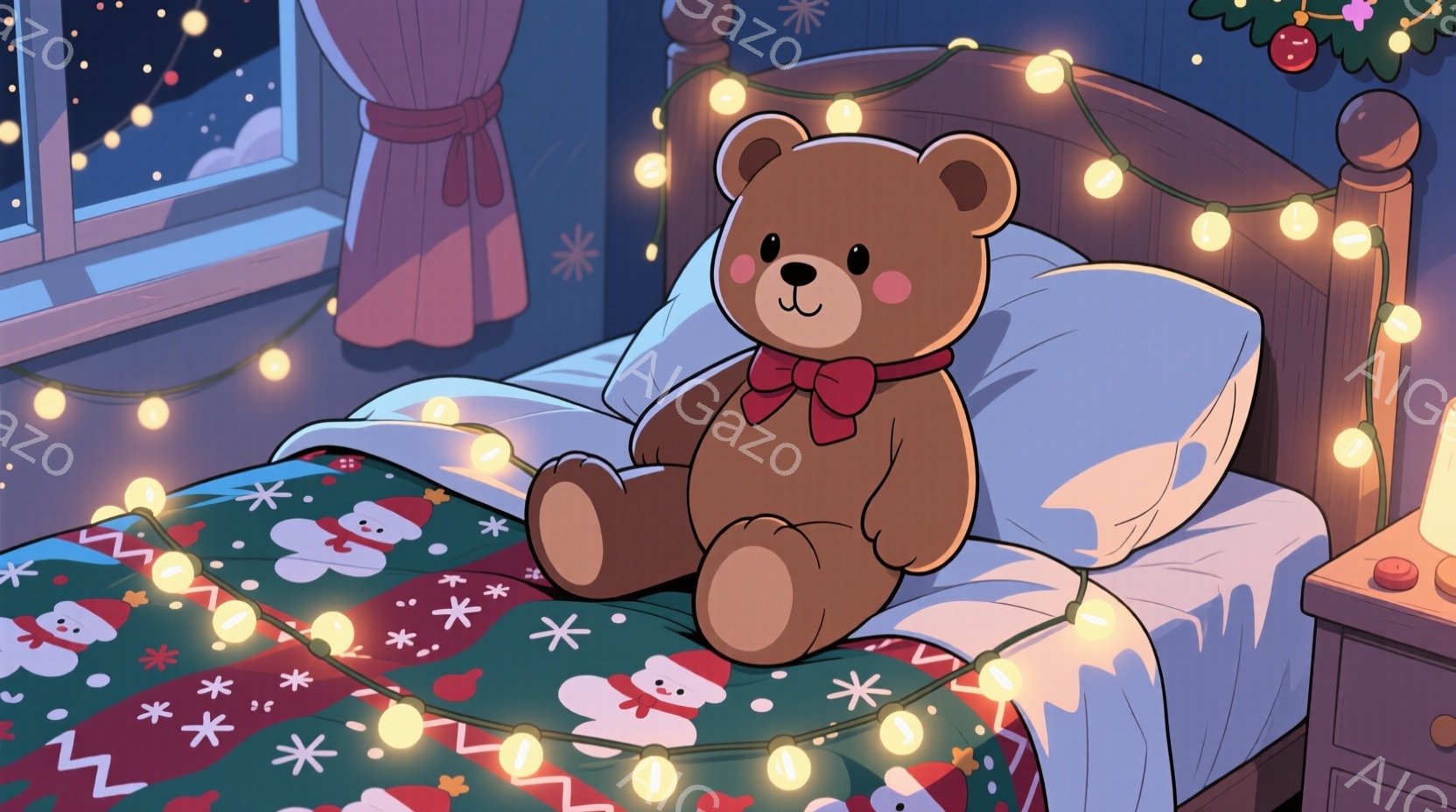この無料AI生成画像「白い子ウサギがカラフルなプレゼントの山から顔を出し、赤いリボンをつけています。背景にはピンクと水色のストライプの壁、おもちゃや本が並んだ棚、そして丸い形のラグが見え、明るく楽しい雰囲気が漂っています。全体的にパステルカラーで統一され、子供部屋のような可愛らしい空間が表現されています。」は、2025年10月25日に作成されました。 サイズは 1664×928px の高解像度で、商用利用も可能なフリー素材として提供しています。