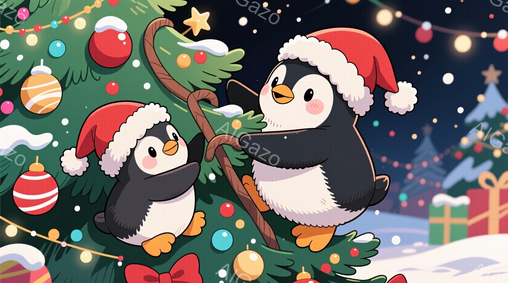 この無料AI生成画像「雪景色の中に、テディベアと雪だるまが並んで立っています。テディベアは赤い帽子とストライプのショールを身につけ、雪だるまは緑の帽子とショールを巻いています。背景には雪に覆われた木々があり、全体的に暖かく、冬の楽しい雰囲気が漂っています。」は、2025年10月25日に作成されました。 サイズは 1664×928px の高解像度で、商用利用も可能なフリー素材として提供しています。