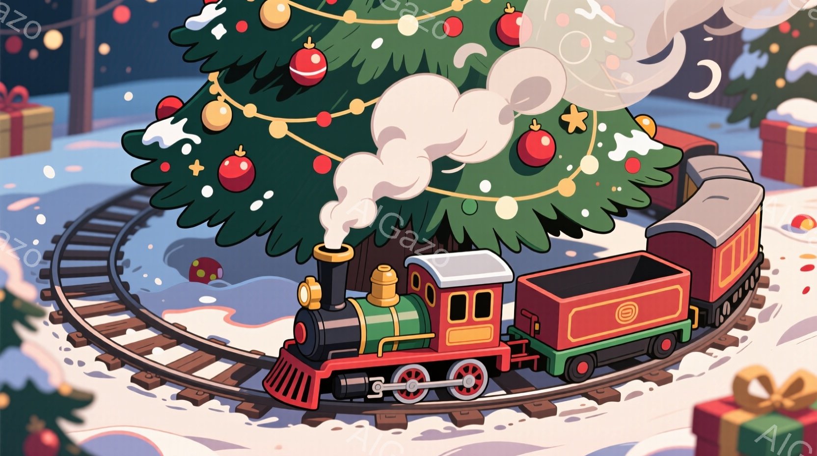 この無料AI生成画像「クリスマスツリーを中心に、カラフルな列車が線路を走っているイラストです。列車は、赤い機関車とさまざまな色の客車で構成され、雪が舞う背景にはプレゼント箱が散らばっています。全体的に温かく、楽しいクリスマスの雰囲気が漂っています。」は、2025年10月25日に作成されました。 サイズは 1664×928px の高解像度で、商用利用も可能なフリー素材として提供しています。