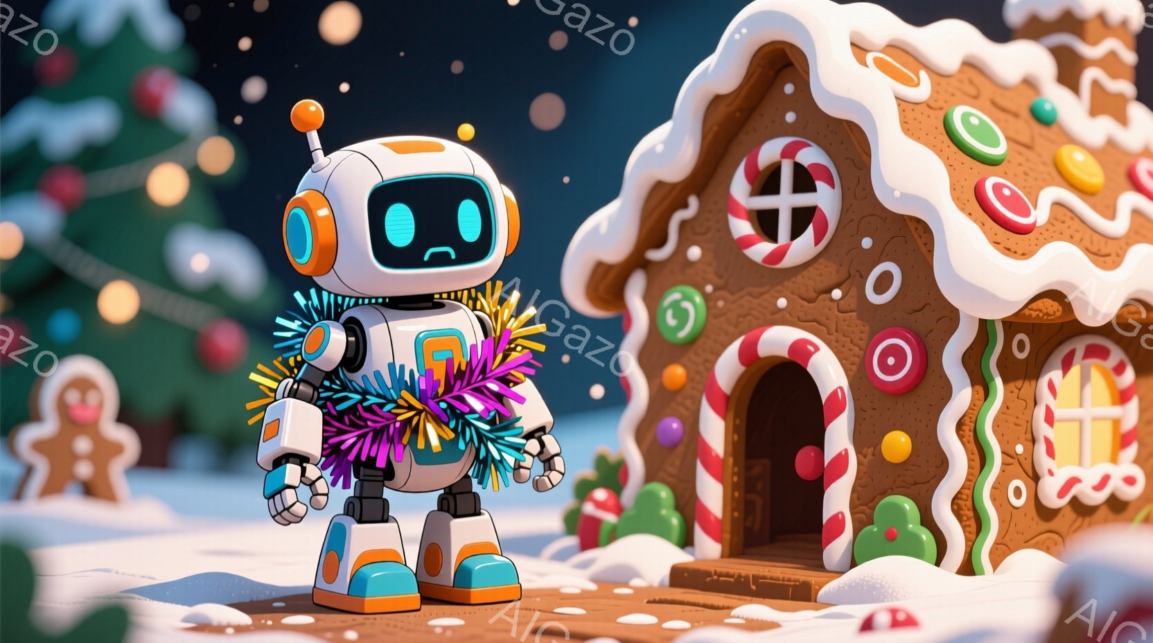 この無料AI生成画像「カラフルなキャンディケーンの道路を、レーシングカーが競い合っている様子が描かれています。背景には、オーナメントで飾られたクリスマスツリーが配置され、雪が舞う冬の夜空が広がっています。全体的に、陽気で楽しいホリデーシーズンを表現したイラストです。」は、2025年10月25日に作成されました。 サイズは 1664×928px の高解像度で、商用利用も可能なフリー素材として提供しています。