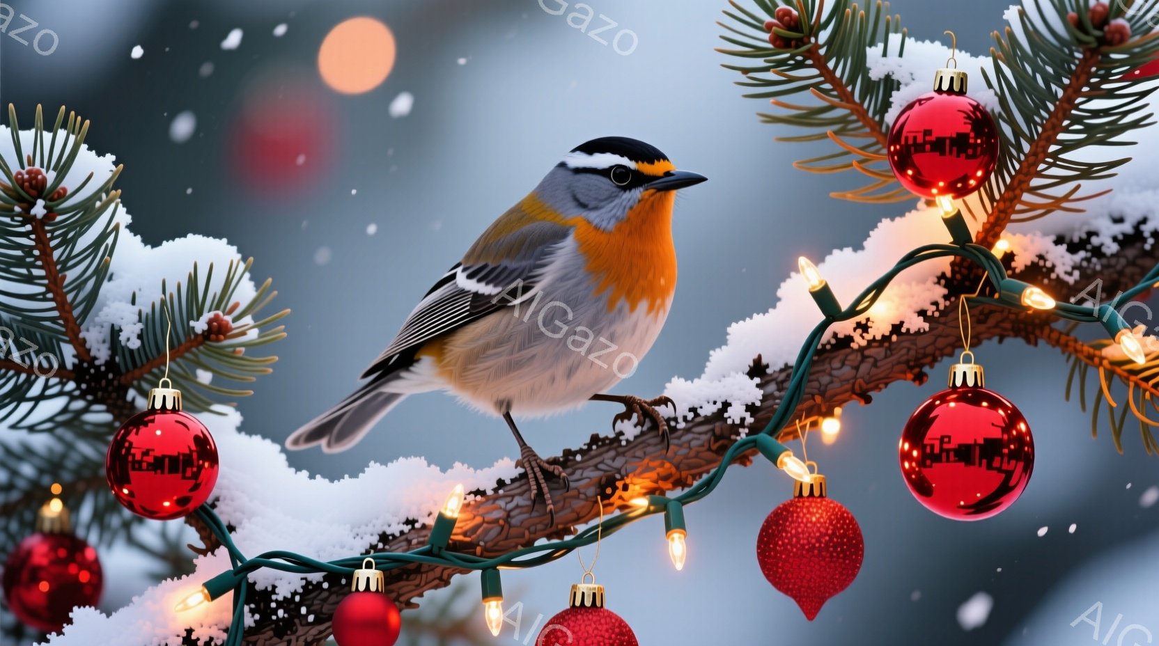 この無料AI生成画像「緑色の背景に、着物を着た猫の置物と、飾り付けられたクリスマスツリーが並んでいます。猫は鮮やかな紫色の着物とオレンジ色の帯を身に着け、片手にキャンディケーンを持って微笑んでいます。背景にはぼやけたクリスマスツリーや雪の埃が確認でき、全体的に暖かく可愛らしいクリスマスの雰囲気を醸し出しています。」は、2025年10月25日に作成されました。 サイズは 1664×928px の高解像度で、商用利用も可能なフリー素材として提供しています。