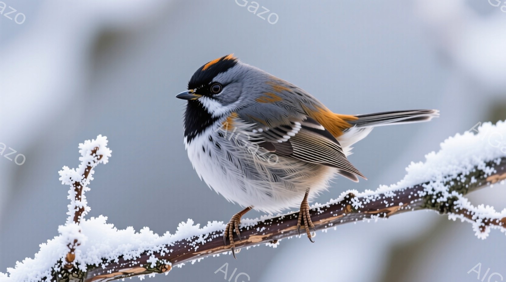 この無料AI生成画像「白い背景に、小さな鳥が凍り付いた枝に止まっている様子が捉えられています。鳥は頭に特徴的な縞模様があり、灰色の背中と茶色の翼、白い腹部を持っています。凍り付いた枝は冬の寒さを表しており、鳥の繊細な羽毛と対照的な光景を作り出しています。」は、2025年10月25日に作成されました。 サイズは 1664×928px の高解像度で、商用利用も可能なフリー素材として提供しています。