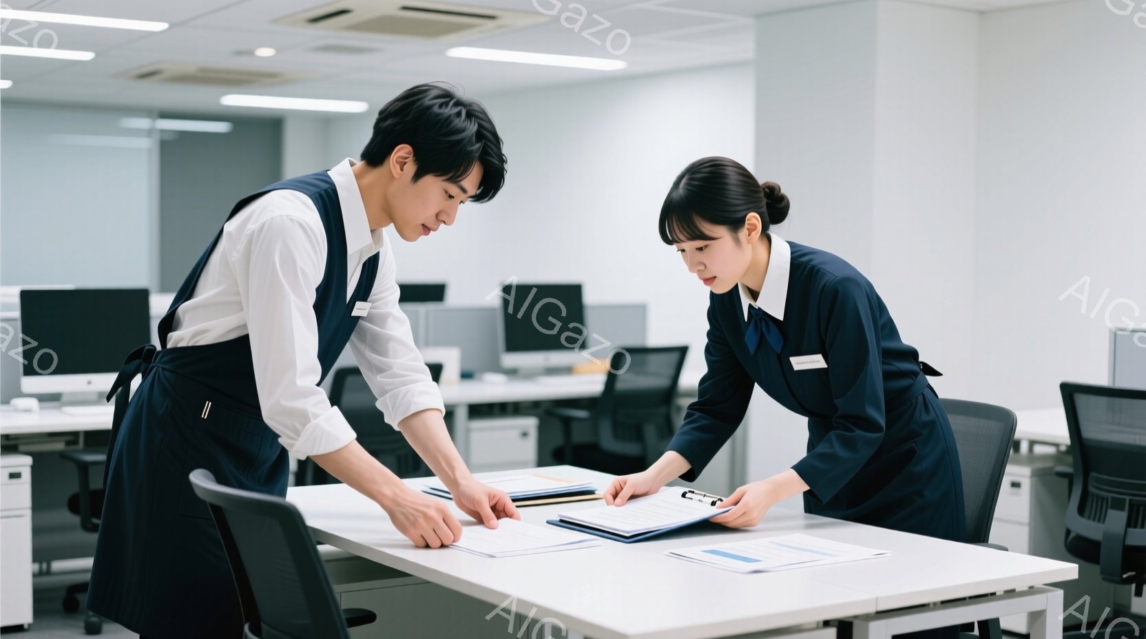 この無料AI生成画像「スーツを着た男女が、明るいオフィスでノートパソコンを見ながら笑顔で話しています。男性は手を振っており、女性は楽しそうに微笑んでいます。背景にはオフィススペースが見え、全体的に活気があり、友好的な雰囲気が漂っています。」は、2025年10月26日に作成されました。 サイズは 1664×928px の高解像度で、商用利用も可能なフリー素材として提供しています。