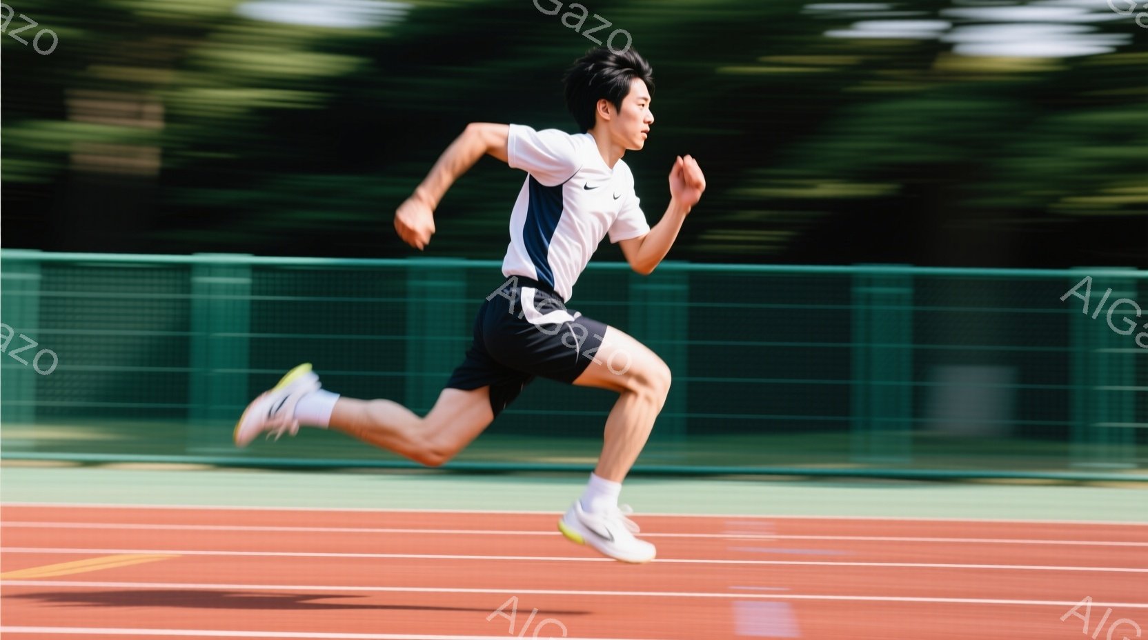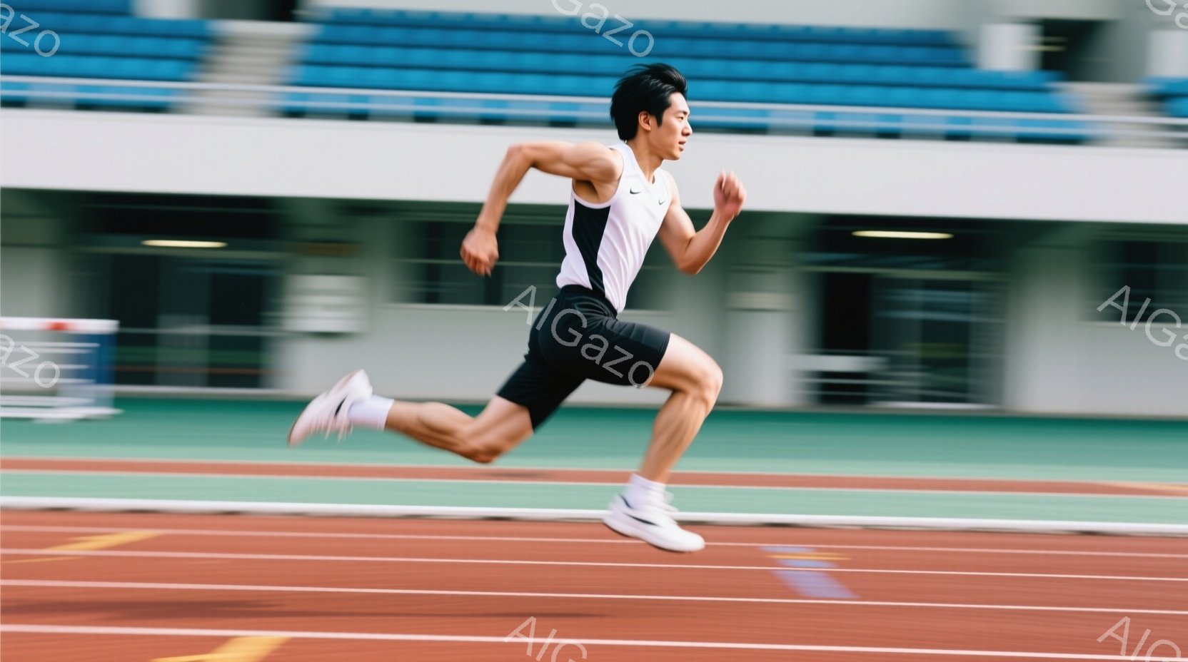 この無料AI生成画像「短い黒髪の男性が、トラックを全力で走っている姿が捉えられている。白いタンクトップと黒いショートパンツ、そして白いスニーカーを着用し、競技番号の「24」が書かれたゼッケンをつけている。背景には緑の芝生とぼやけた建物が見え、晴れた日の屋外競技場の活気ある雰囲気が伝わってくる。」は、2025年10月26日に作成されました。 サイズは 1664×928px の高解像度で、商用利用も可能なフリー素材として提供しています。