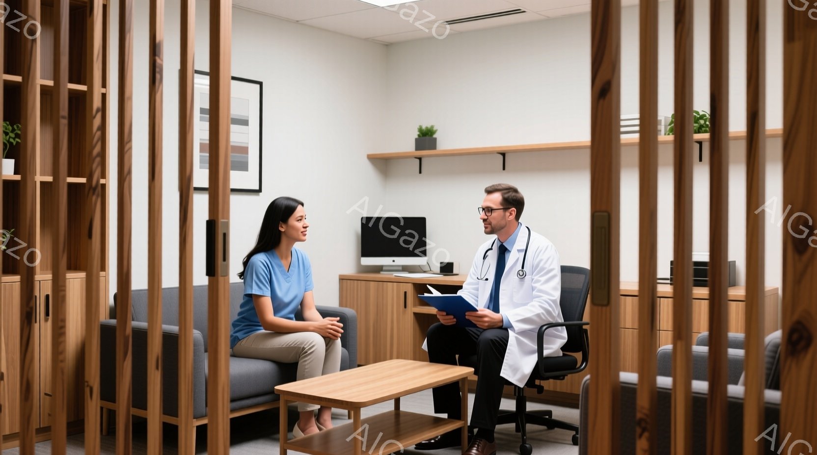 この無料AI生成画像「白衣を着た若い男性医師が、青い手袋を着用し、聴診器を年配の男性患者の胸に当てています。患者は椅子に座り、やや緊張した表情で医師を見つめています。背景には医療機器やコンピューターが見え、病院の一室のような、清潔で落ち着いた雰囲気が漂っています。」は、2025年10月26日に作成されました。 サイズは 1664×928px の高解像度で、商用利用も可能なフリー素材として提供しています。